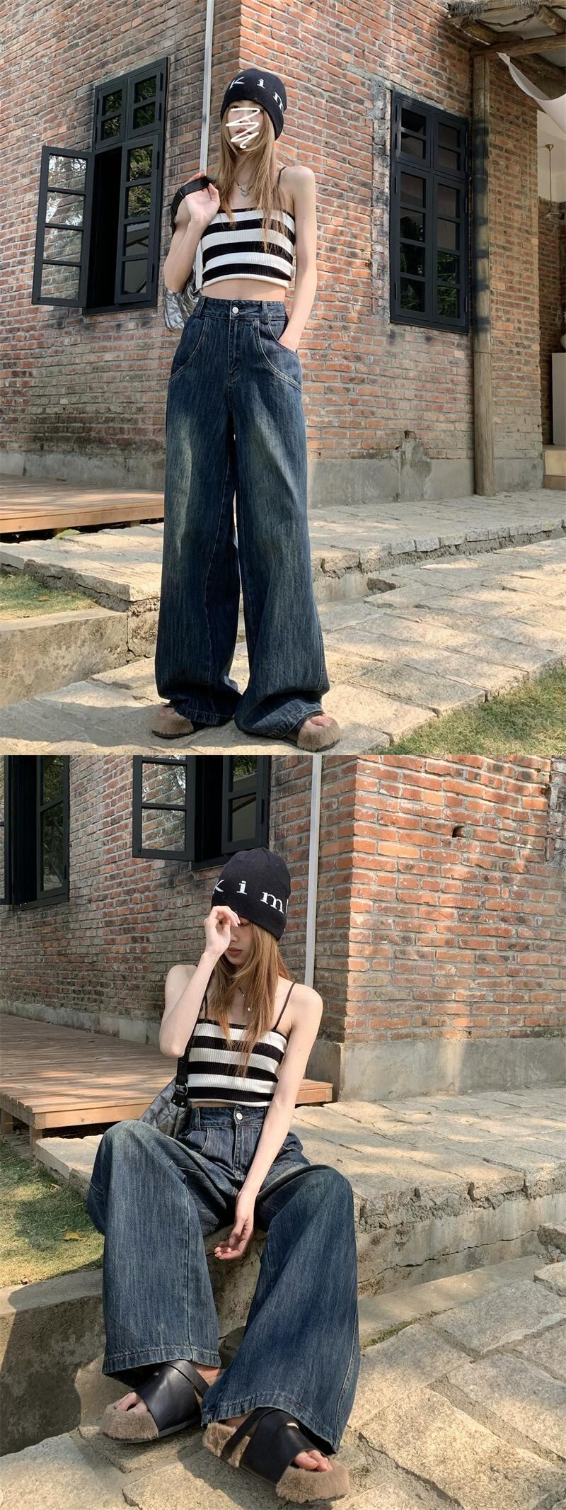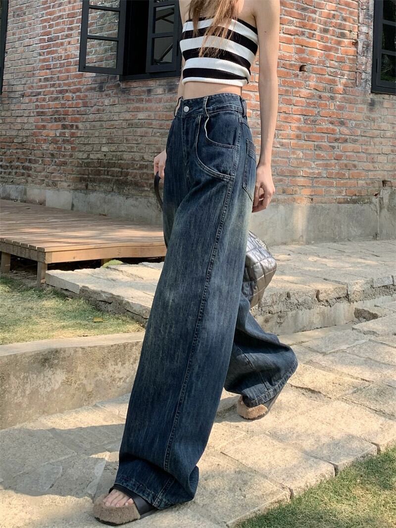 バージョンのハイウエストレトロジーンズ女性の夏の2023新しい小さなルーズワイドレッグパンツモップパンツ ハイウェスト サマー 夏物 0921930058936467