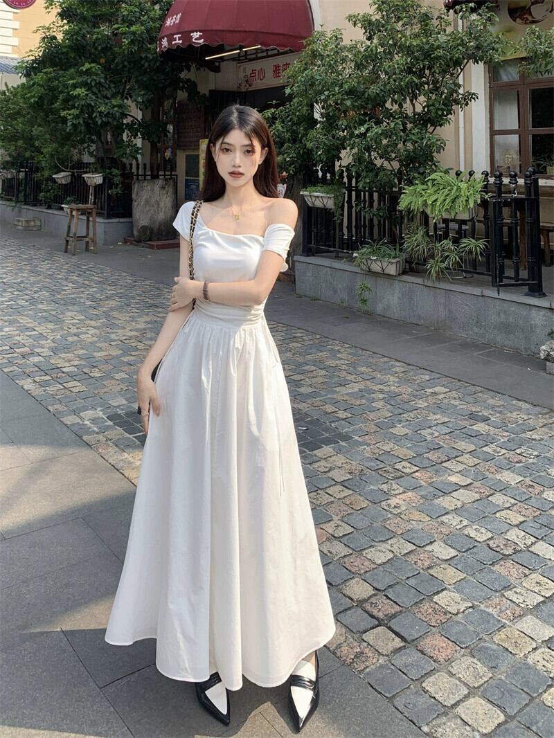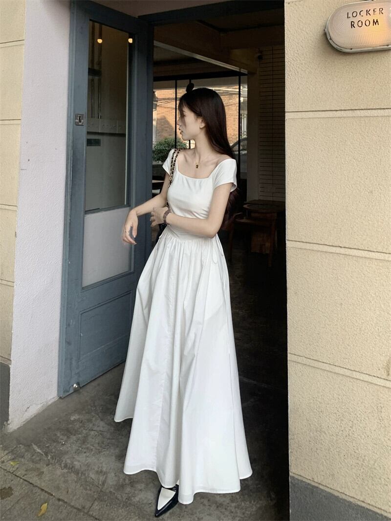 スパイスフレンチスクエアカラー半袖ドレスレディース2023夏新作オールマッチ自己修養スリムボトムミモレ丈スカート サマー 夏物 スクウェア 0921986244733147