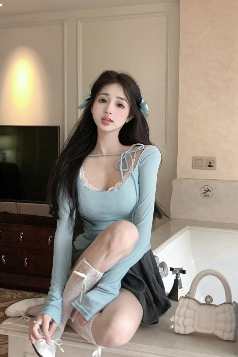 スタイル純粋な欲望スタイルスーツ女性 2023 春の新長袖トップレースサスペンダースカートスリーピーススーツ ロング スプリング 春物 ピュア 092196905631682
