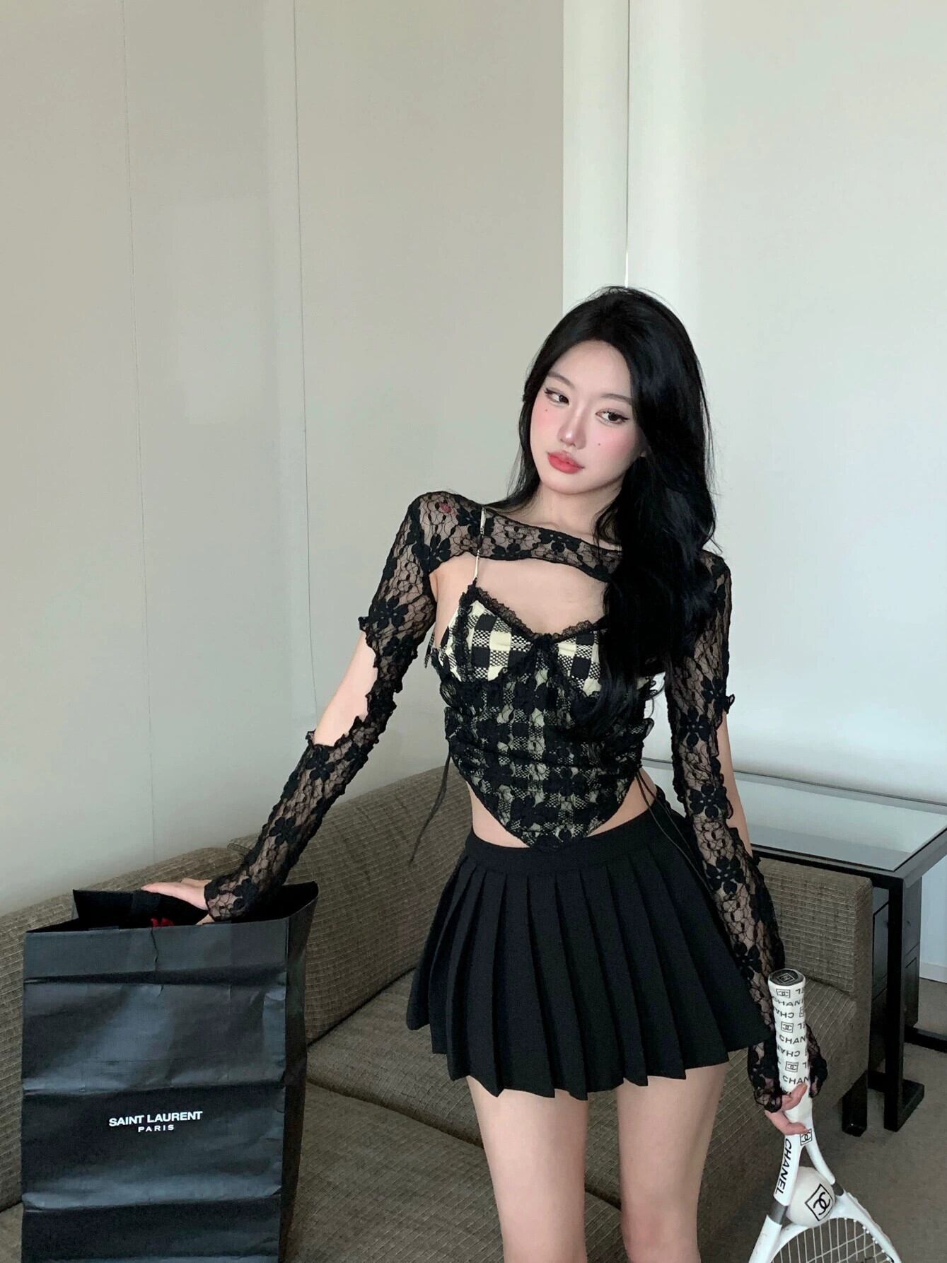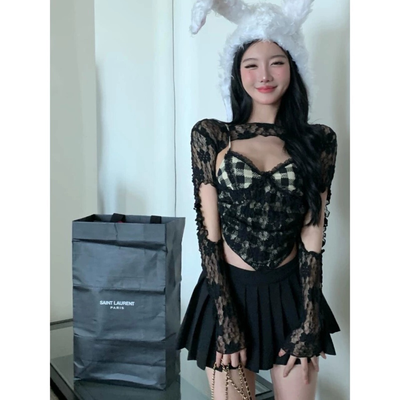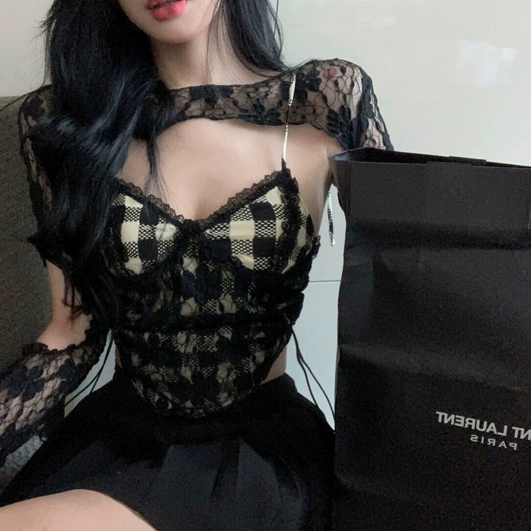 セクシーな女の子レースキャミソール女性の夏 2023 新しい純粋な欲望高品質プリーツタイトなショートトップ サマー 夏物 ピュア 0921975658515888