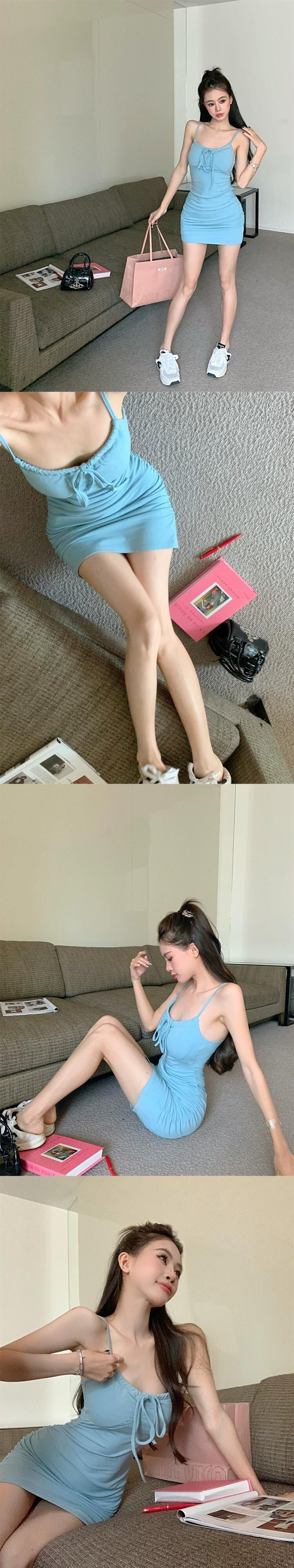 純粋な欲望スタイルサスペンダードレス女性の夏の 2023 新しいプリーツスリムスリム固定コースターバッグヒップスカート サマー 夏物 0921935832469146