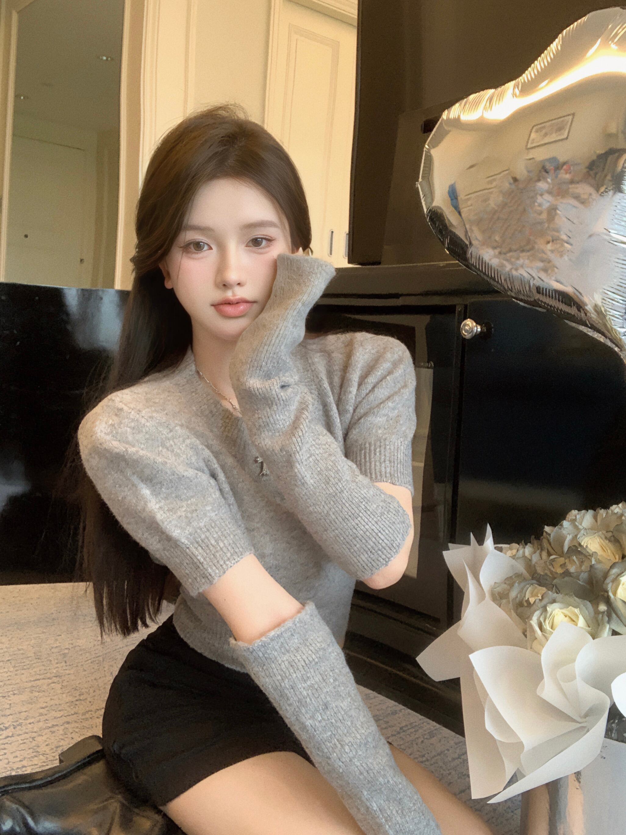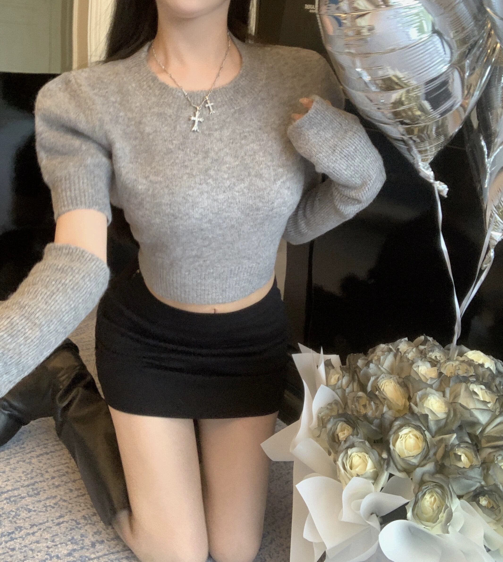 純粋な欲望スタイルスリーブセーター女性春と秋 2023 ショートセクションスリムスリム甘いスパイシーニットトップ 大人ガーリー スウィート キュート カジュアル スプリング 春物 オータム 秋物 0921997419382979