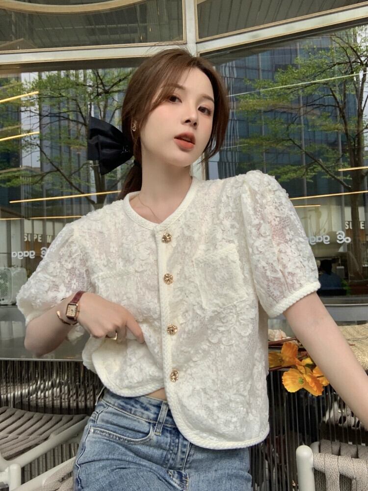 スタイルスモールフレグランスデザインセンス半袖シャツレディース2023年夏新作優しいスタイル薄手オールマッチシャツ サマー 夏物 0921954496743998
