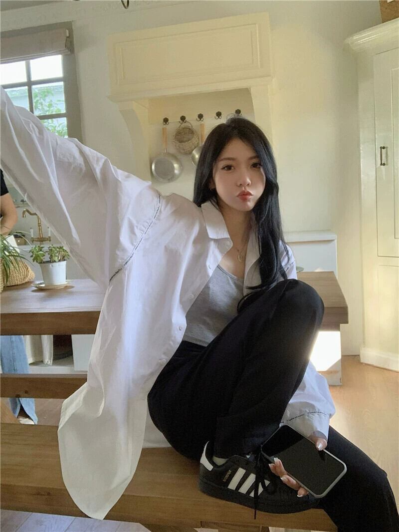 ニッチシックなファッション白長袖シャツ女性の夏の 2023 新しい怠惰なスタイルルーズオールマッチシャツジャケット ロング ホワイト サマー 夏物 0921986009779844