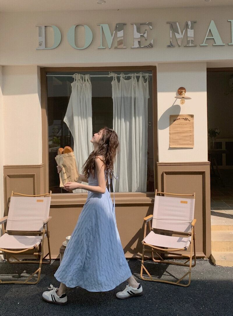 フレンチホリデースタイルシーサイドサスペンダードレス女性の夏2023新しいミッドレングス気質オープンバック妖精スカート サマー 夏物 0921930613414129