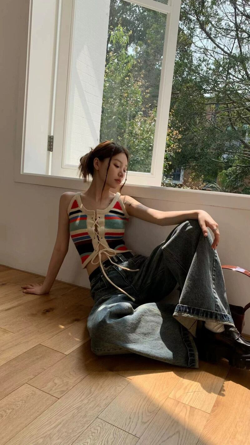 Sweet Spice Girls レインボーストライプ ニットキャミソール レディース 夏 セクシー Iベルト ショートトップスとアウター付き 大人ガーリー スウィート キュート カジュアル サマー 夏物 ハーネス 0921947140543339