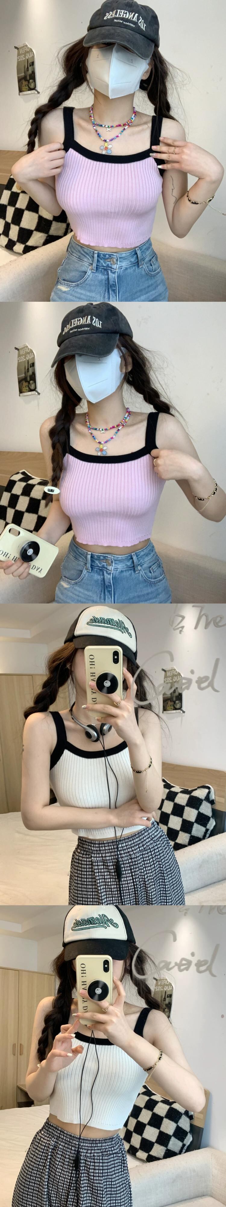 カラーコントラストのデザイン感のあるバージョンのキャミソールレディース2023年夏新作スリムフィットで薄手のインナーウェアニットトップス サマー 夏物 0921967060628218