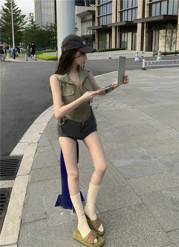 アメリカのジッパーツーリングベスト女性の夏 2023 新しいセクシーなショートセクションスリムスリムアウターウェアベスト潮 サマー 夏物 0921911082990595