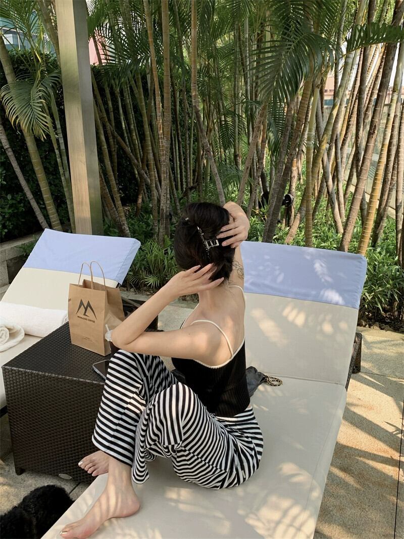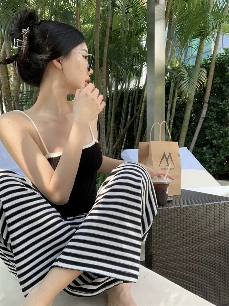 バージョンのセクシーなスーツキャミソール女性の 2023 春の新作パンツハイウエストストライプカジュアルパンツ 2 点セット ハイウェスト スプリング 春物 0921965007519063