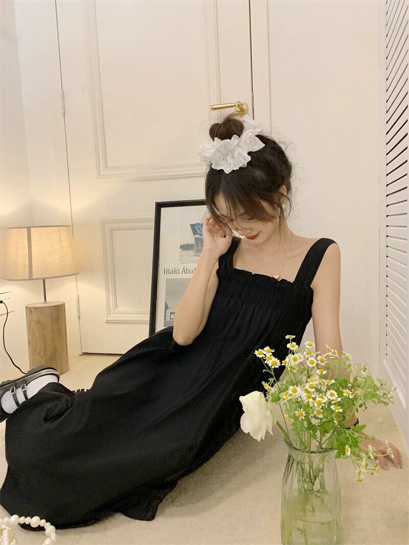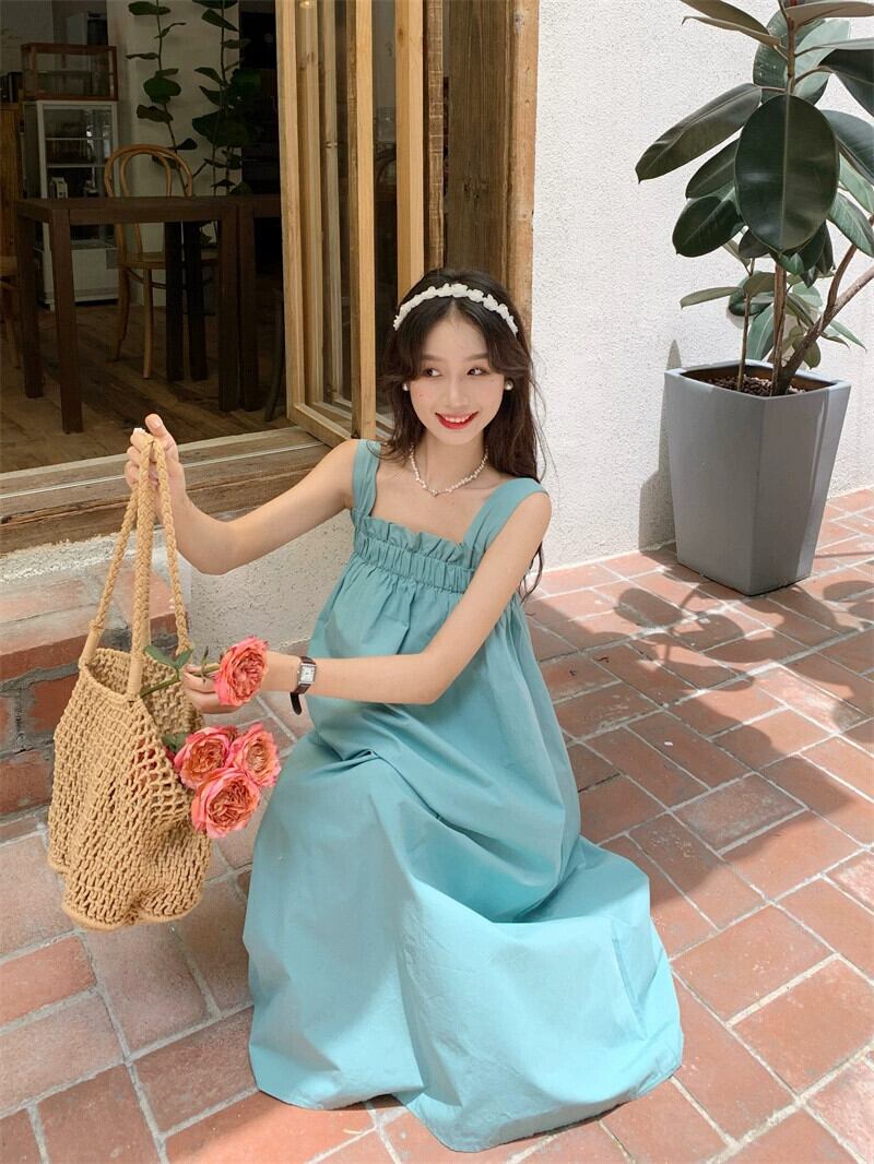 フレンチホリデースタイルのチューブトップサスペンダードレスレディース夏ルーズカジュアルロングスカート雰囲気ブルーラップ胸スカート サマー 夏物 0921946665133412