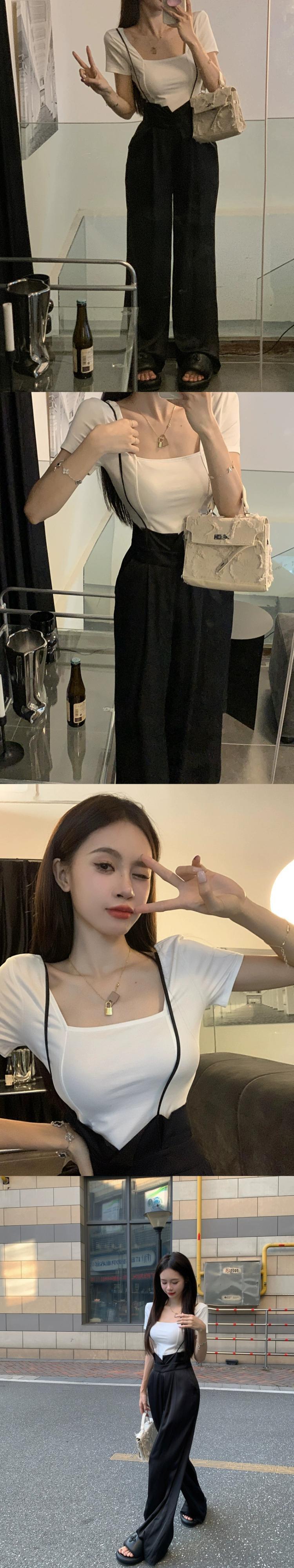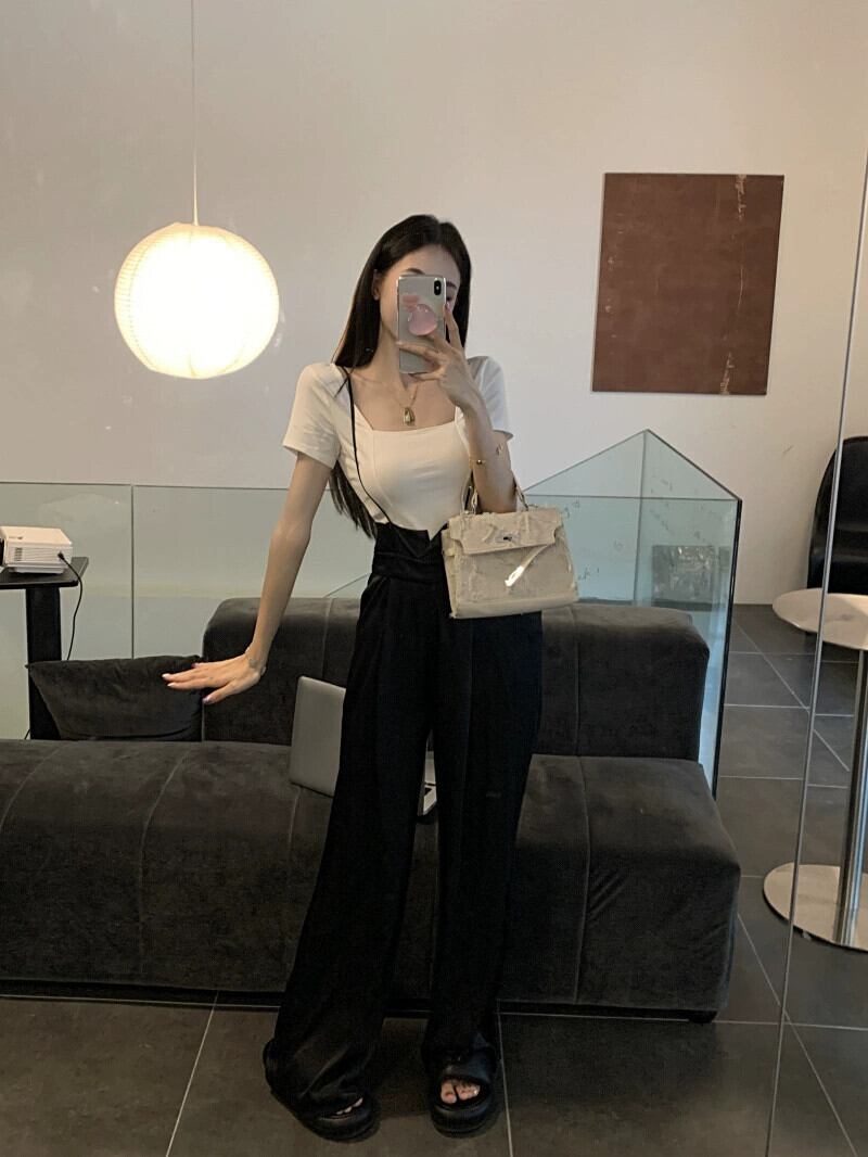 優しいスタイルのスクエアカラー半袖 Tシャツレディース 2023 夏の新作ショートセクションスリムスリムボトムシャツトップ サマー 夏物 スクウェア 0921957584537249
