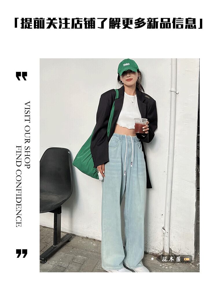 怠惰なスタイルの弾性ハイウエストジーンズのバージョンの女性の夏の2023新しい緩くて薄いオールマッチワイドレッグロングパンツ ハイウェスト エラスティック 伸縮 サマー 夏物 0921938975040826