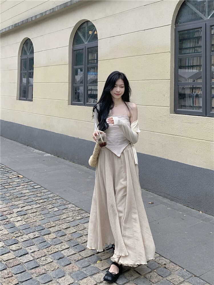 純粋な欲望スタイルのファッションスーツ女性 2023 春の新長袖カーディガンキャミソールベストスカートスリーピーススーツ ロング スプリング 春物 092198151506039