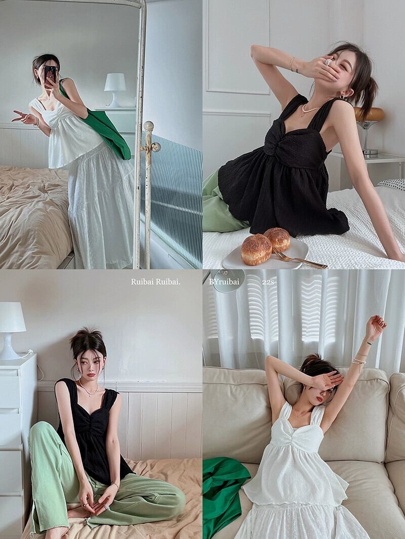 フランスの高級ちょう結びキャミソール婦人服夏 2023 新しいウエストウエストスリム気質オールマッチトップス リボン サマー 夏物 0921960562970759