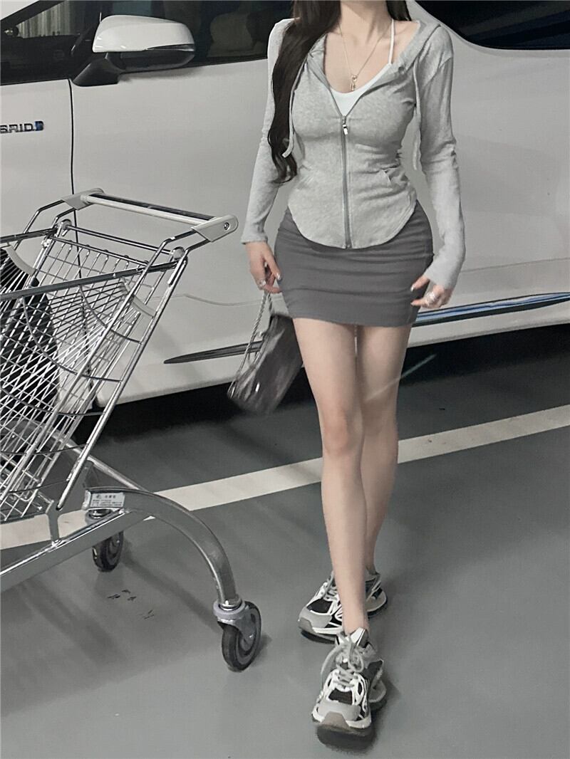 純粋な欲望スタイルのスーツスカート女性 2023 春の新しいフード付きジャケットベストバッグヒップスカート 3 点セット スプリング 春物 0921915923710987