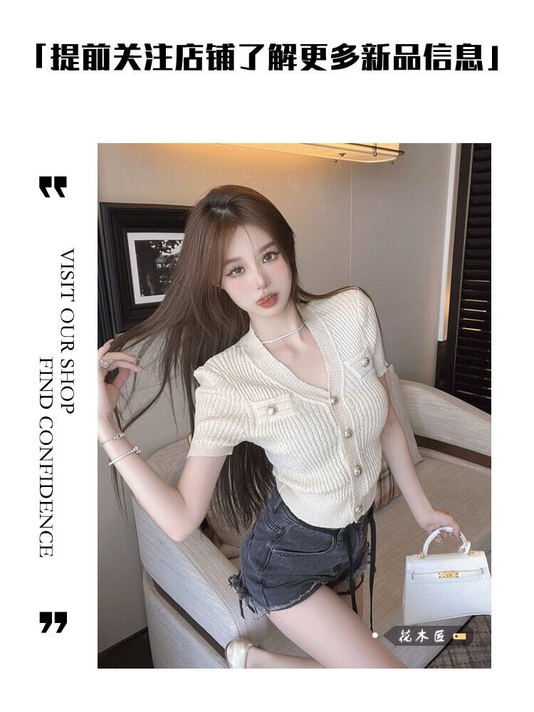 Xiaoxiang 気質 V ネック半袖ニットセーター婦人服 2023 夏の新しいスリムフィットと薄いショートカーディガントップ サマー 夏物 Vネック 0921997493125263