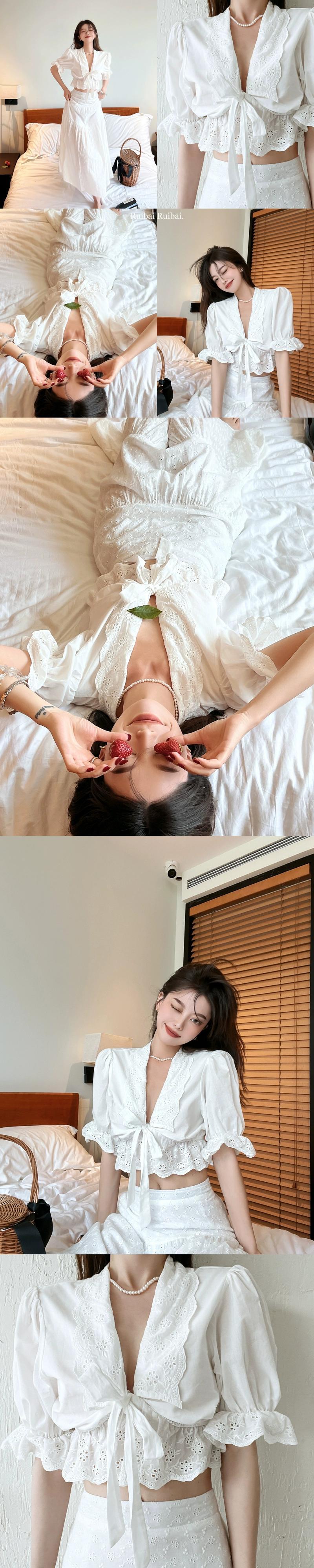 フランス宮廷風刺繍白シャツレディース夏デザインセンスニッチシャツハイウエストショート半袖トップス ハイウェスト ホワイト サマー 夏物 0921917544133199