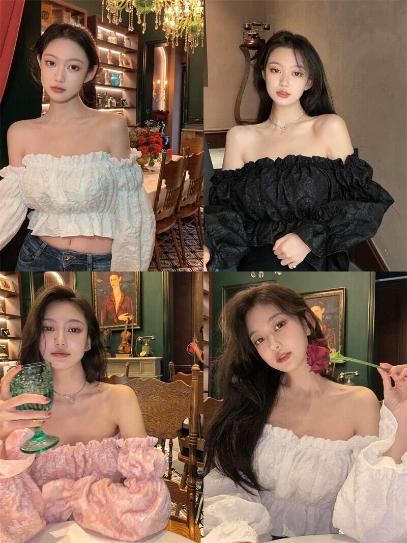優しい風襟長袖シャツ女性の 2023 夏の新しい甘い風プリーツショートウエスト痩身シャツ ロング 大人ガーリー スウィート キュート カジュアル サマー 夏物 0921921361338531