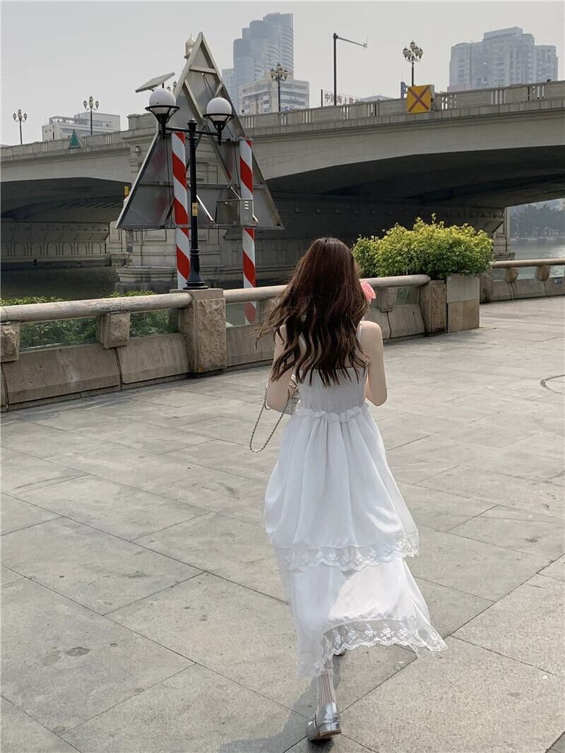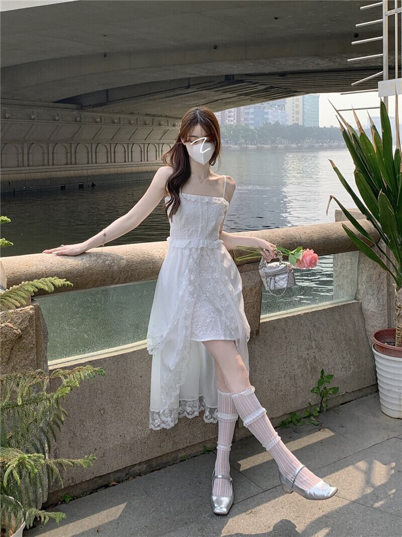 -end ホワイト レース サスペンダー ドレス レディース 2023 夏の新作イレギュラー スリム スカート サマー 夏物 0921987627838270