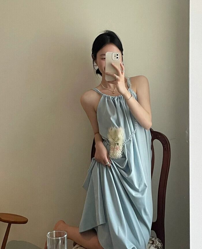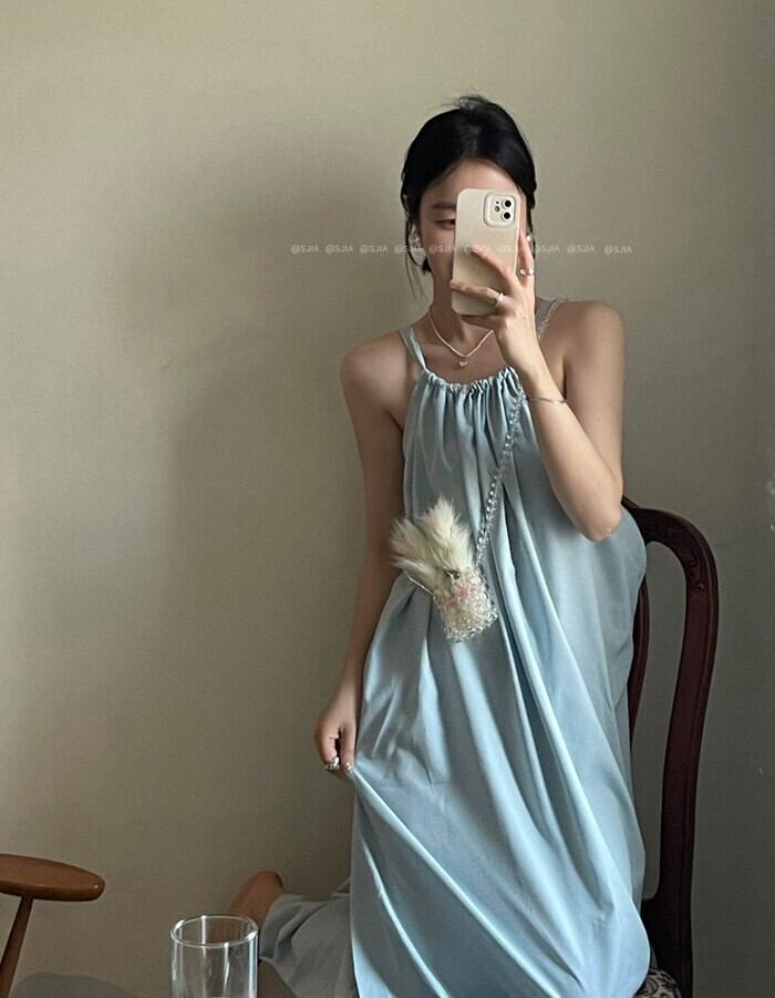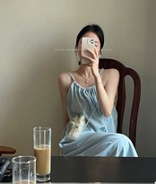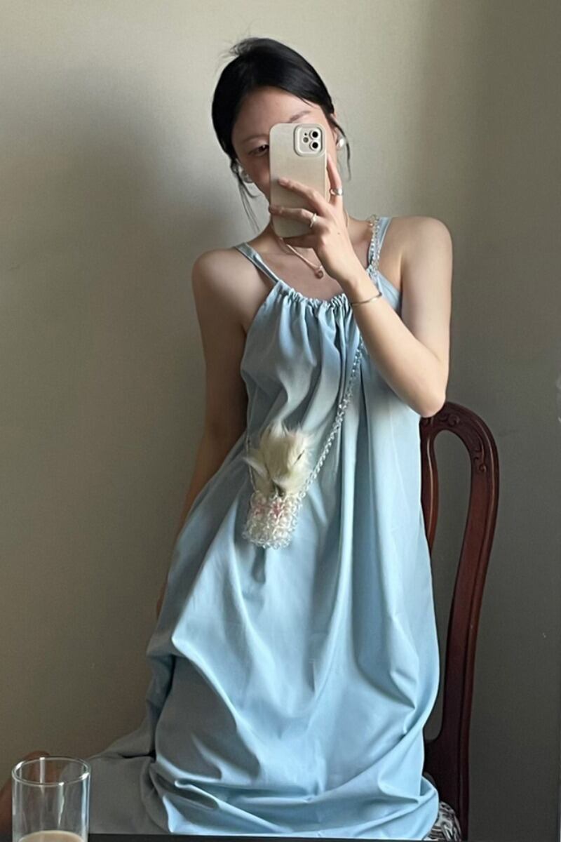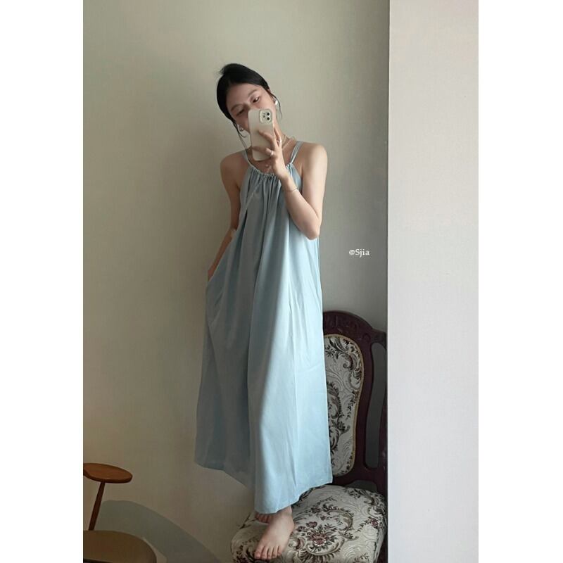 センスライトブルーポケット巾着サスペンダードレス女性の夏の 2023 新しいルーズスリムミッドレングススカート潮 サマー 夏物 0921927887323101