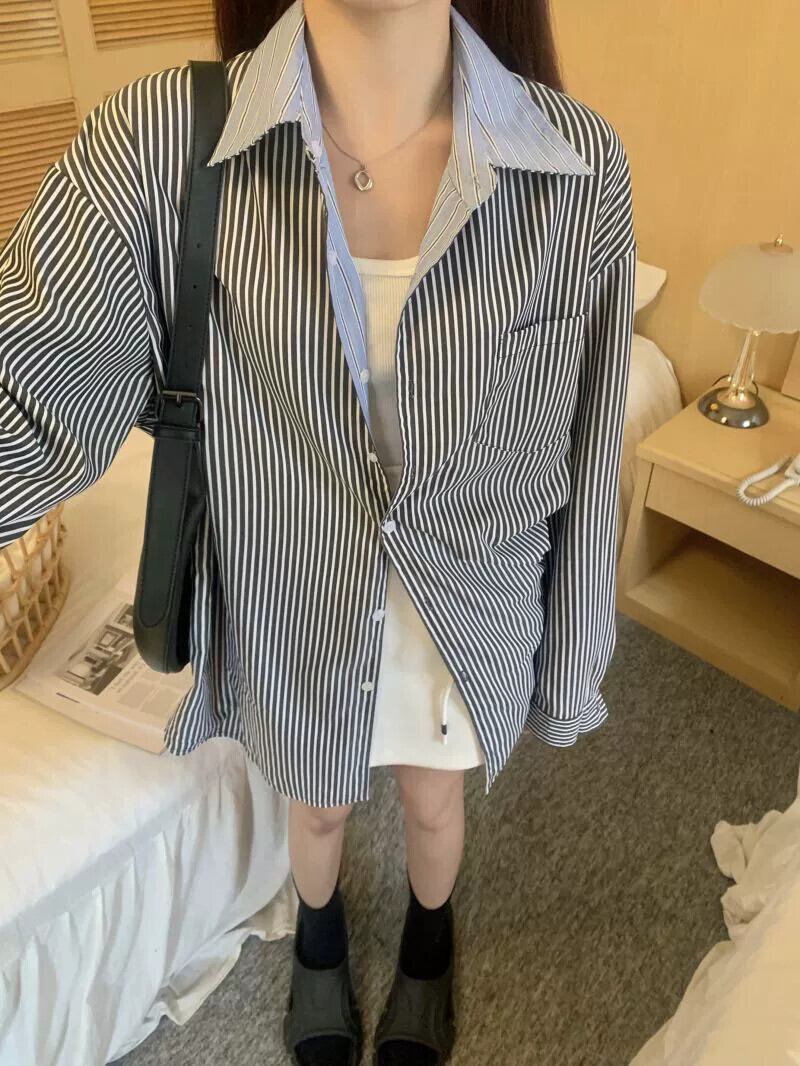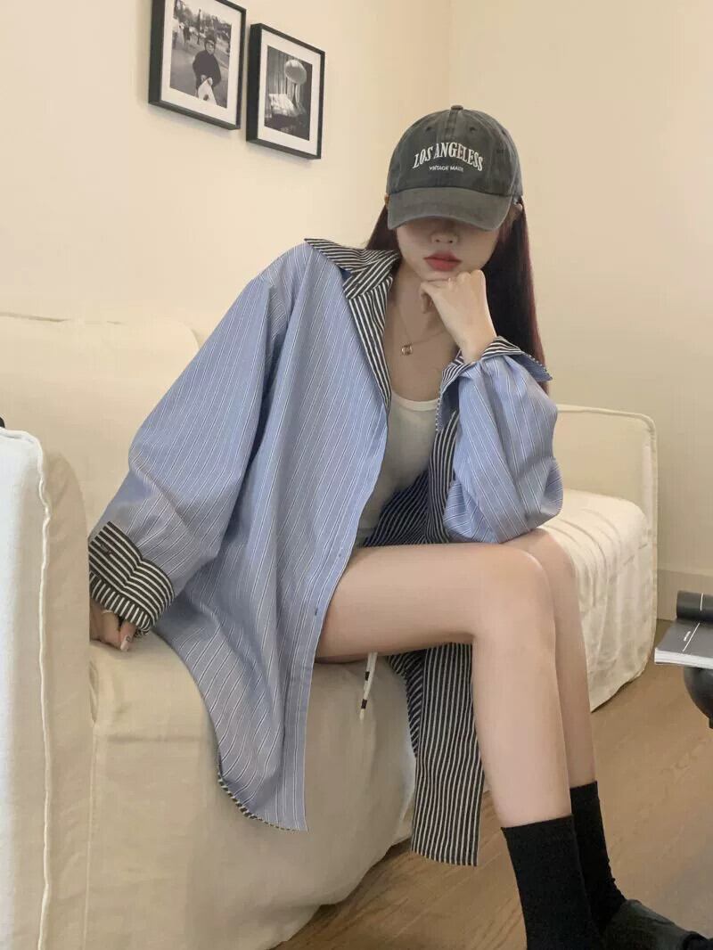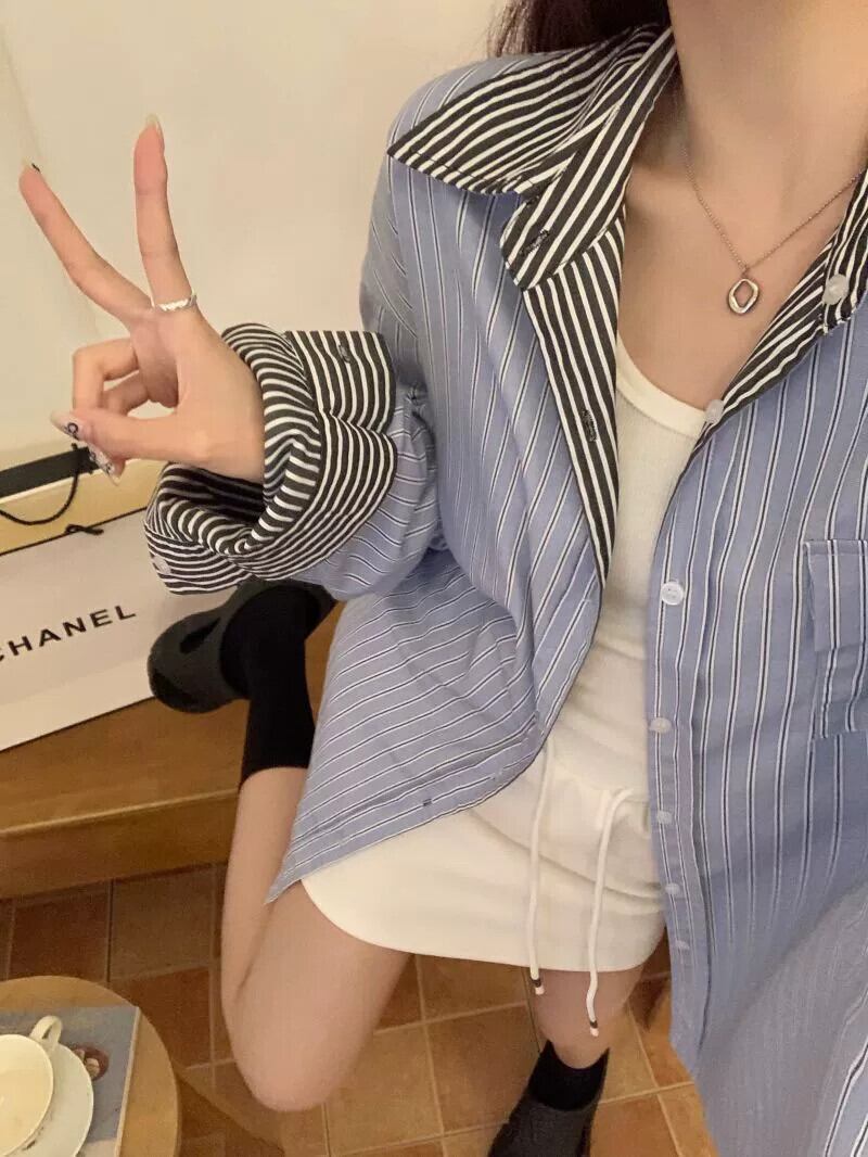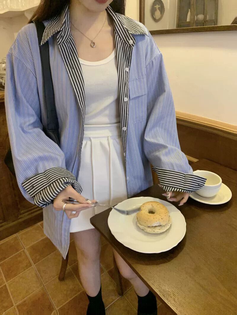 感覚対照的な色怠惰な風リバーシブルシャツ婦人服夏 2023 新しいニッチミッドレングスルーズシャツ サマー 夏物 0921946459617809