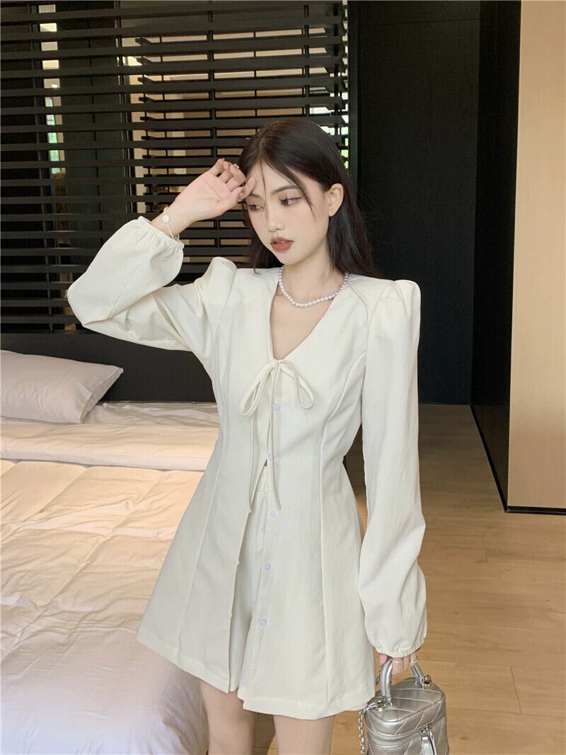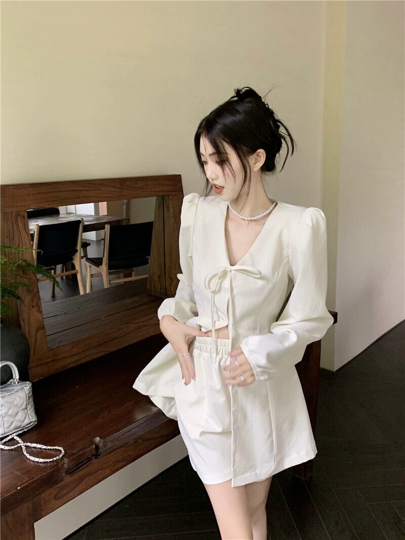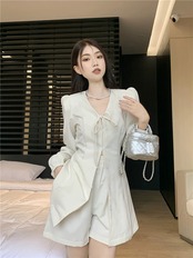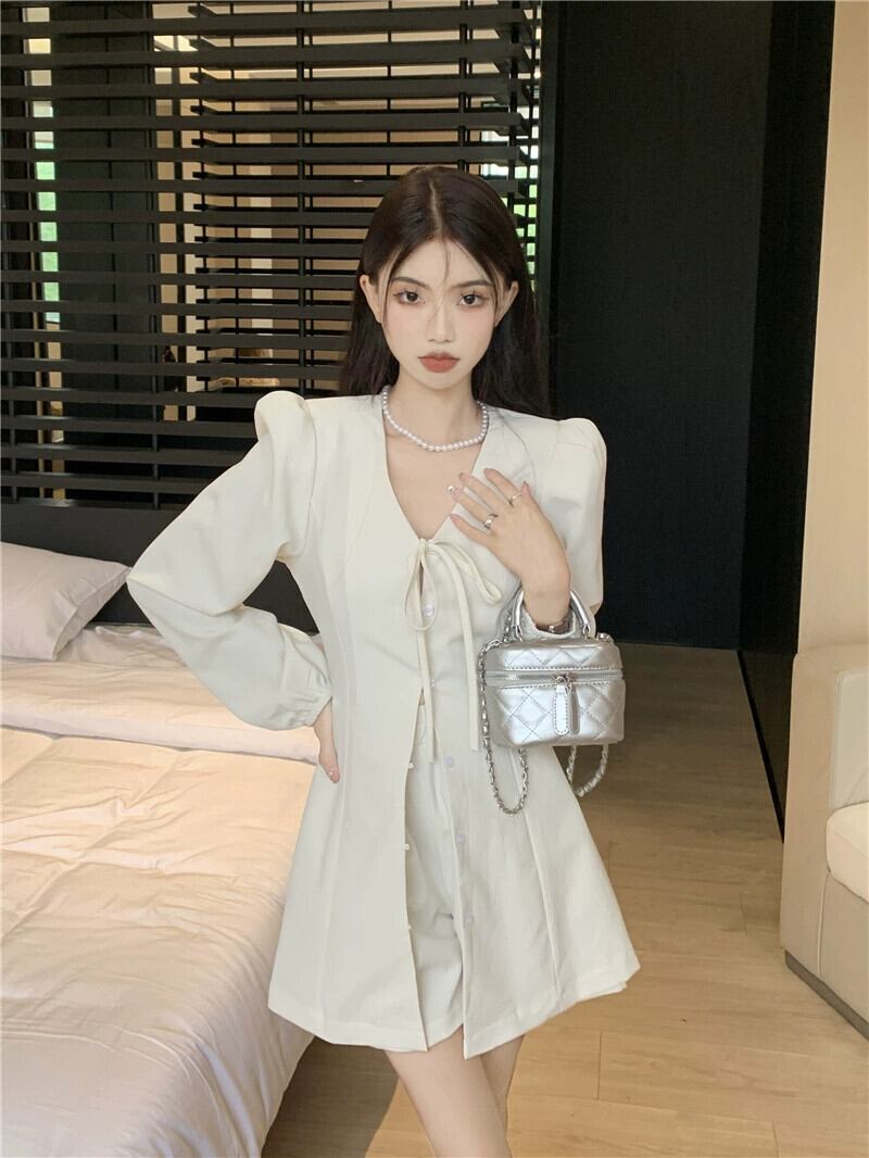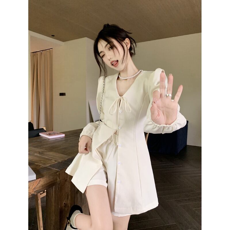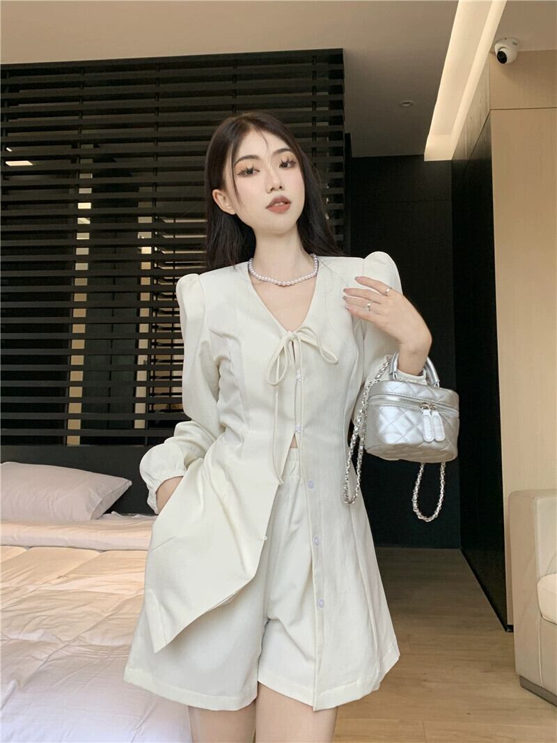 高級スーツの女性の 2023 夏の新作ショルダー長袖トップハイウエストショーツ気質 2 点セット ハイウェスト ロング サマー 夏物 ブルマー 0921998677453532