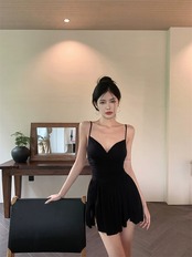 バレエ スタイル ブラック サスペンダー ドレス レディース サマー スカート A ライン ストラップレス セクシー スリット スカート 夏物 Aライン 0921933061674425