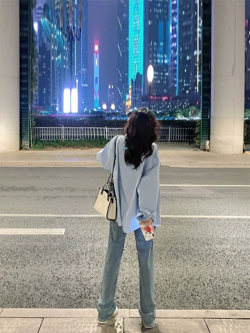 塩は甘い長袖ブルーシャツジャケット女性の夏の 2023 新しいミッドレングスルーズオールマッチ日焼け止めシャツ ロング 大人ガーリー スウィート キュート カジュアル サマー 夏物 0921981533207290