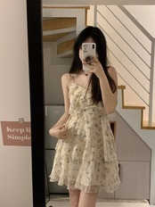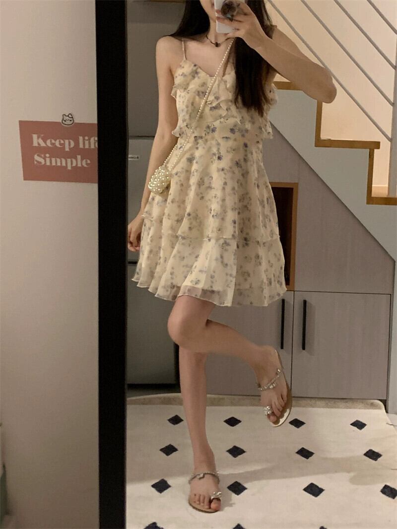 純粋な欲望風甘い花柄スリングドレス女性の夏 2023 新しい小さなスカートフレンチニッチスカート 大人ガーリー スウィート キュート カジュアル サマー 夏物 0921963982850513
