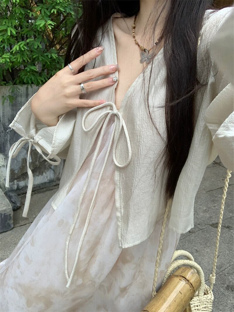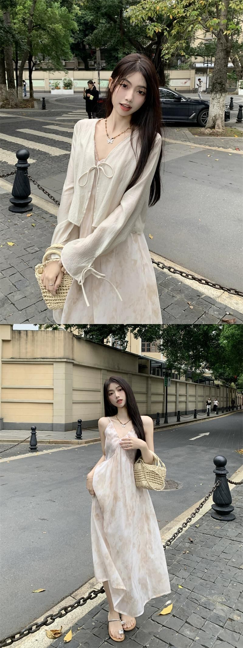 色:Vネックサスペンダースカート,レースアップカーディガン