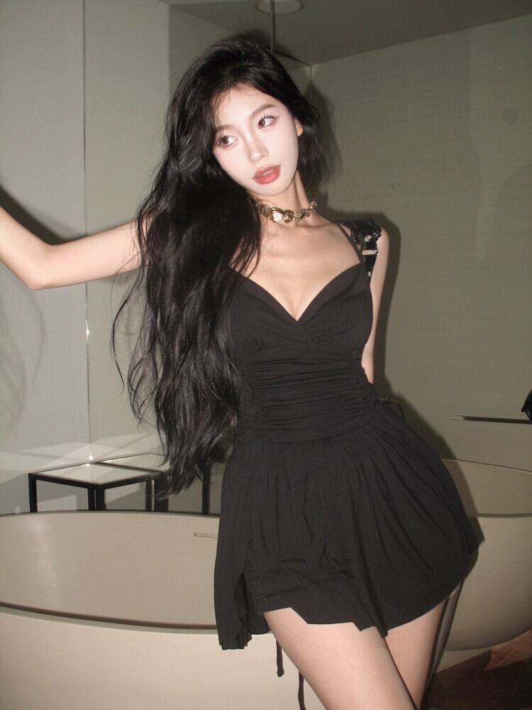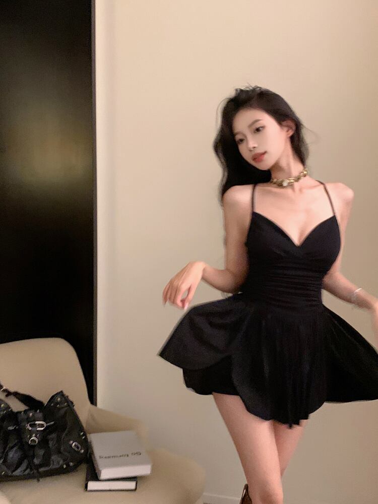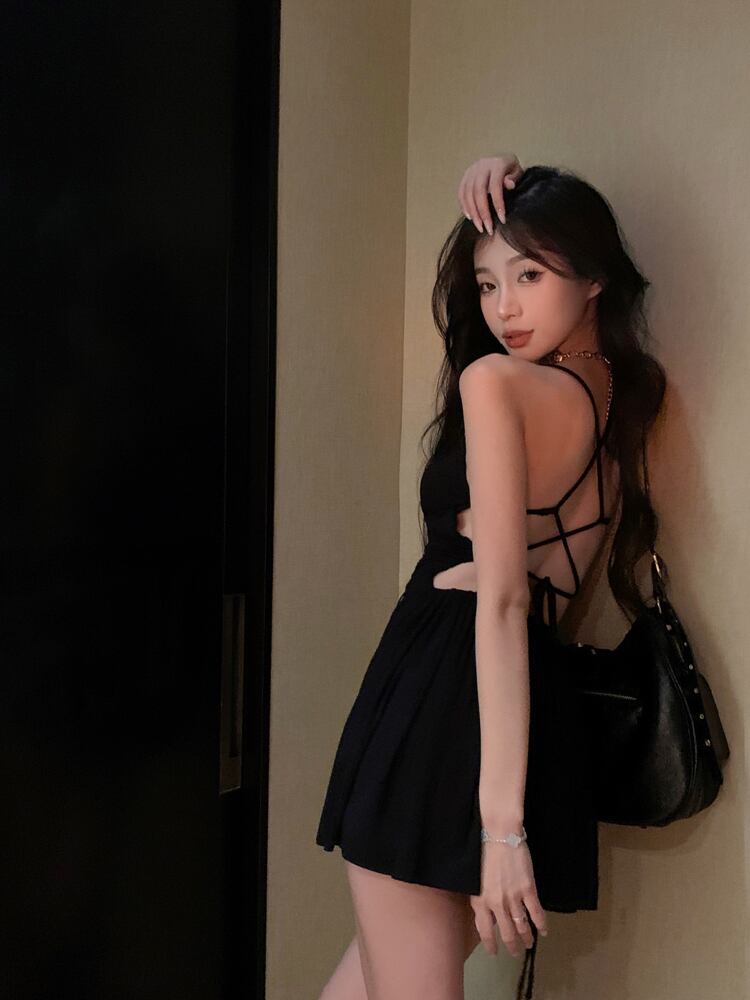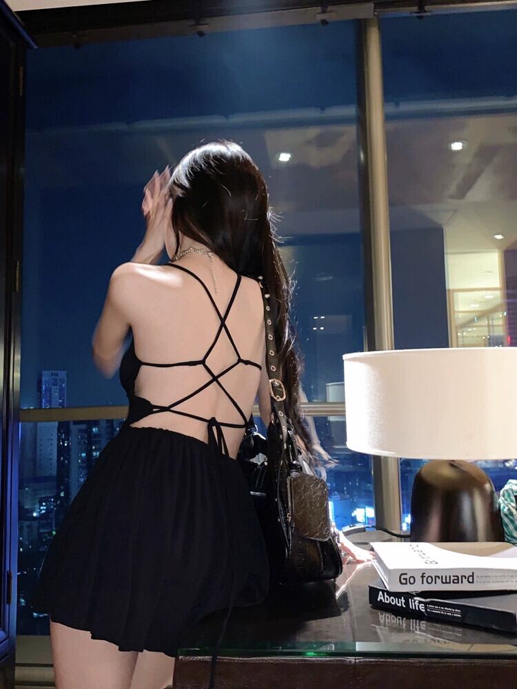 ダークバレエスタイルのセクシーなオープンバックタイドレス女性の夏 2023 新しい純粋な欲望風ウエストサスペンダースカート サマー 夏物 ピュア 0921940397441680