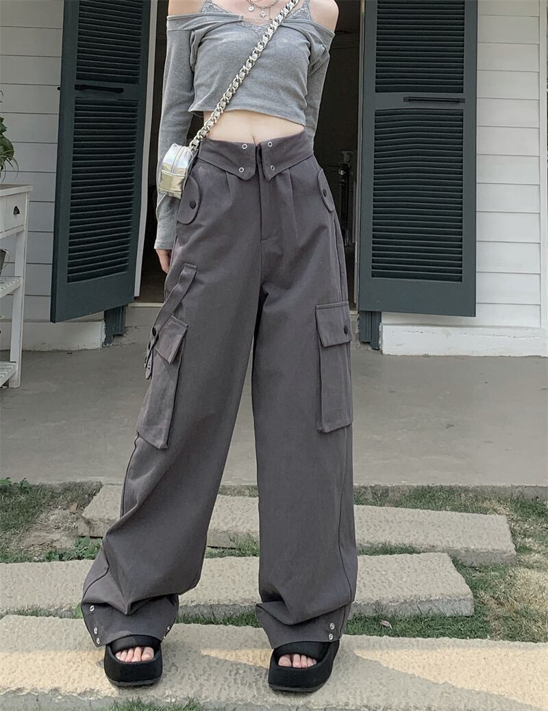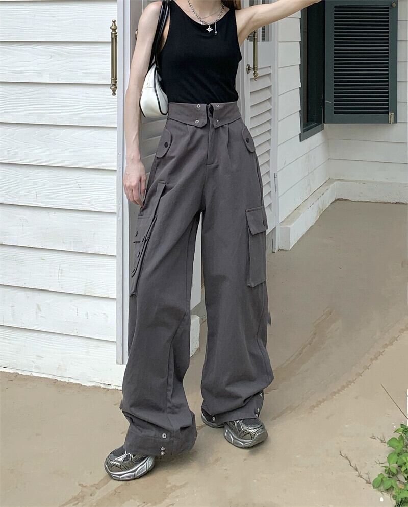 アメリカンフライドストリートハイウエスト薄手カジュアルパンツレディース2023年夏新作オールマッチデザインルーズワイドレッグオーバーオール ハイウェスト サマー 夏物 0921985748076647