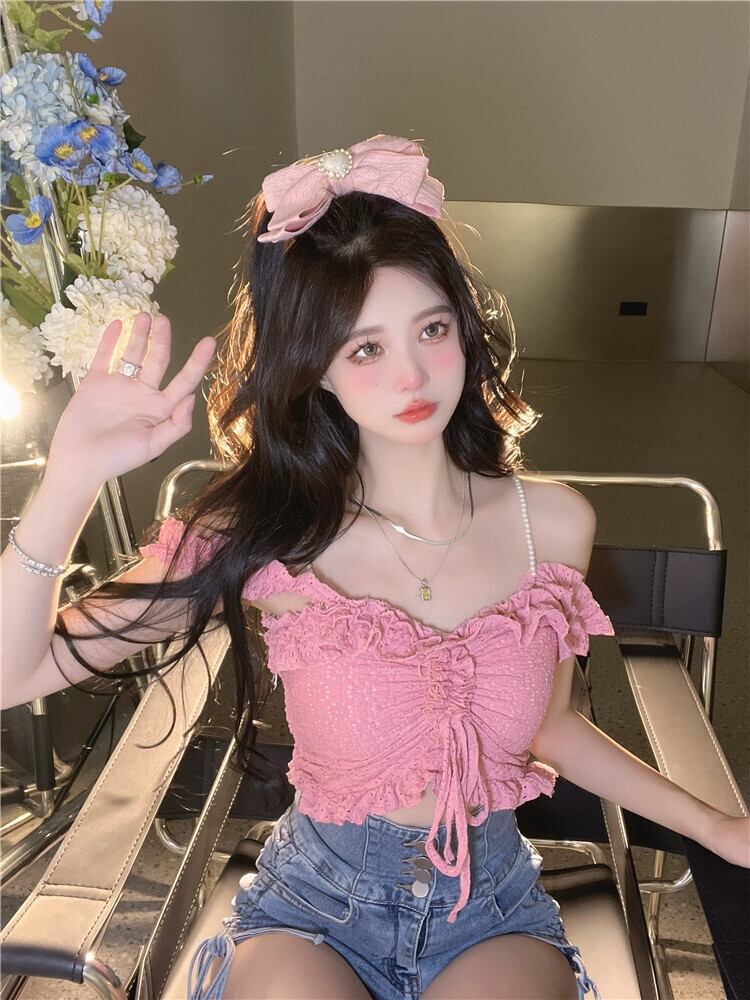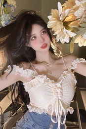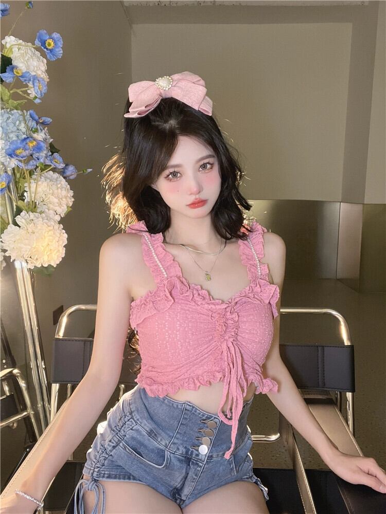 ホット純粋な欲望木耳キャミソール女性の夏 2023 新しいオールマッチショートセクションスリムスリムボトミングトップ サマー 夏物 ピュア 0921930597958509