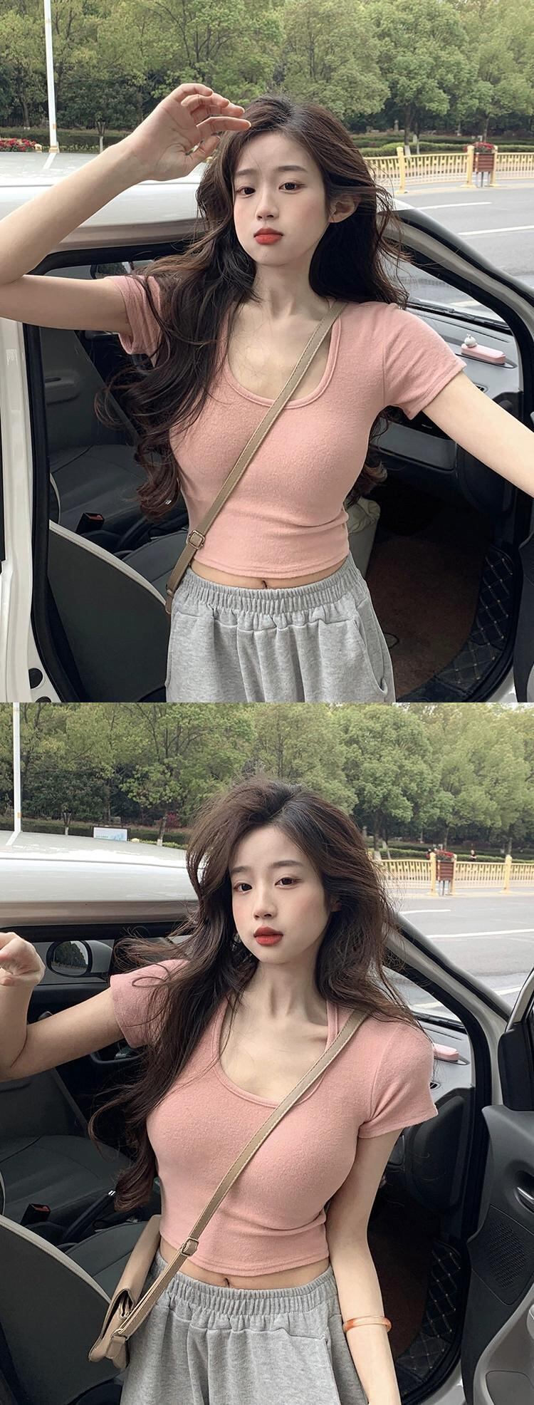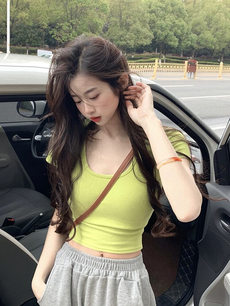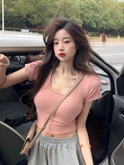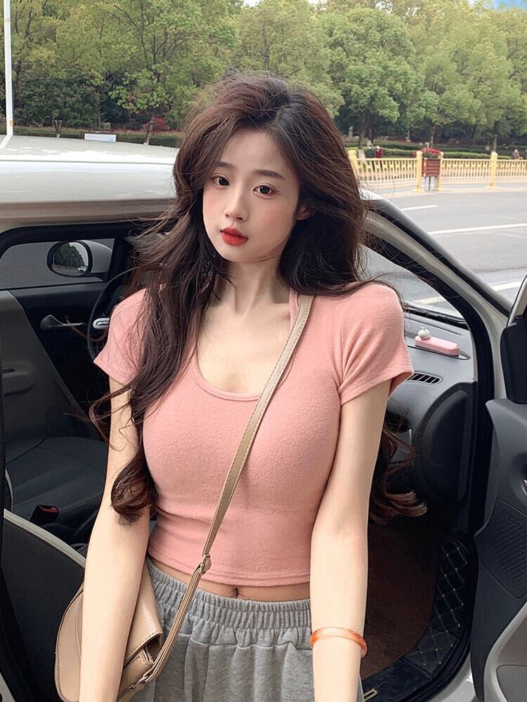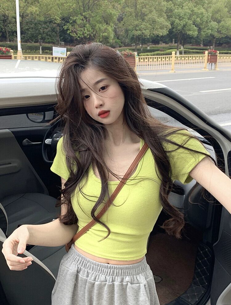 純粋な欲望の風 U ネック半袖 T シャツ女性の 2023 夏の新しいオールマッチ気質短いセクション自己修養と薄底トップトレンド ショート サマー 夏物 Tシャツ 0921928422325479