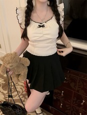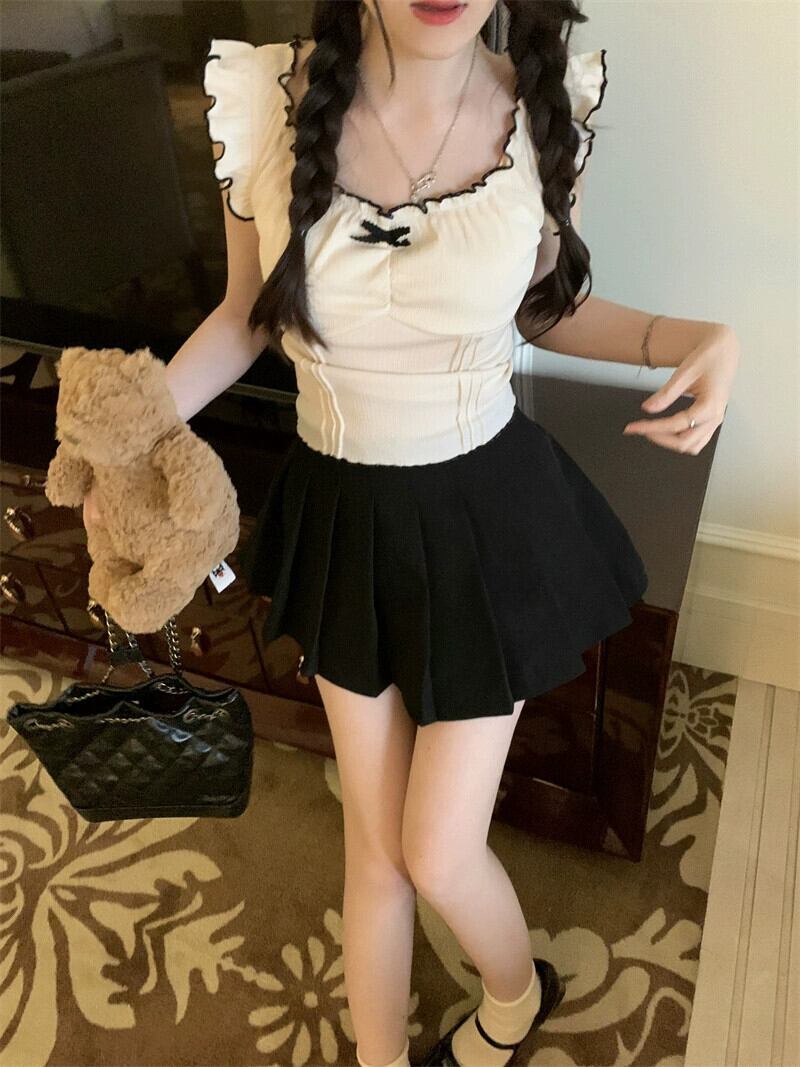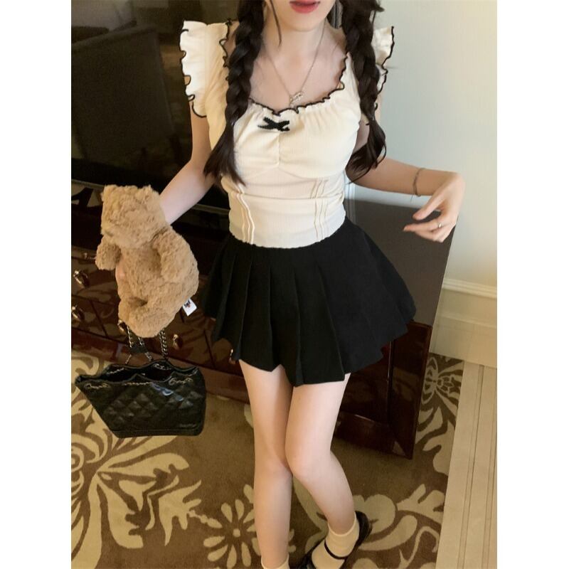 恋人ソフト小さなフライングスリーブキャミソール女性の夏 2023 新色コントラストカラー年齢削減ちょう結びスリムジャケット リボン 大人ガーリー スウィート キュート カジュアル サマー 夏物 0921940866011770
