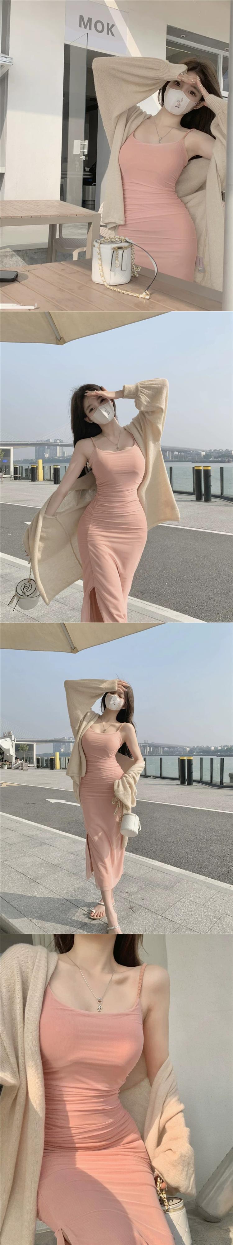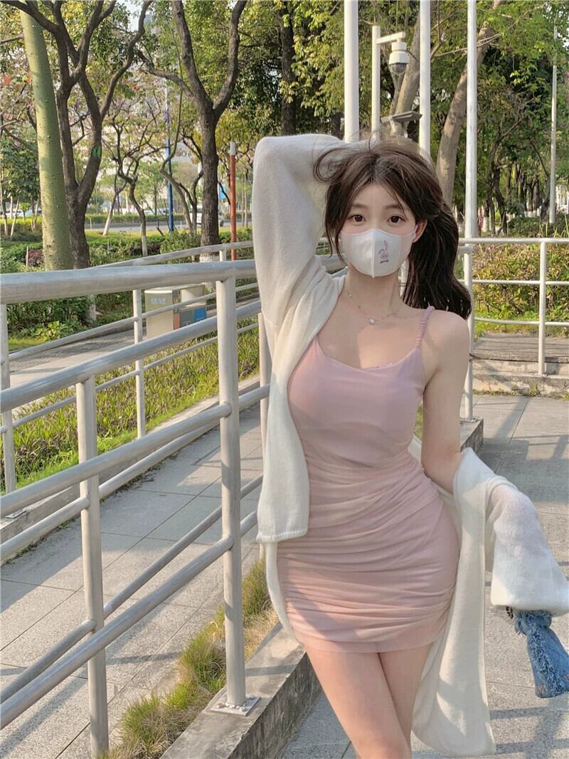 純粋な欲望スタイルのセクシーなサスペンダードレス女性の夏 2023 新しい痩身プリーツウエストメッシュガーゼバッグヒップスカート サマー 夏物 092198263579695