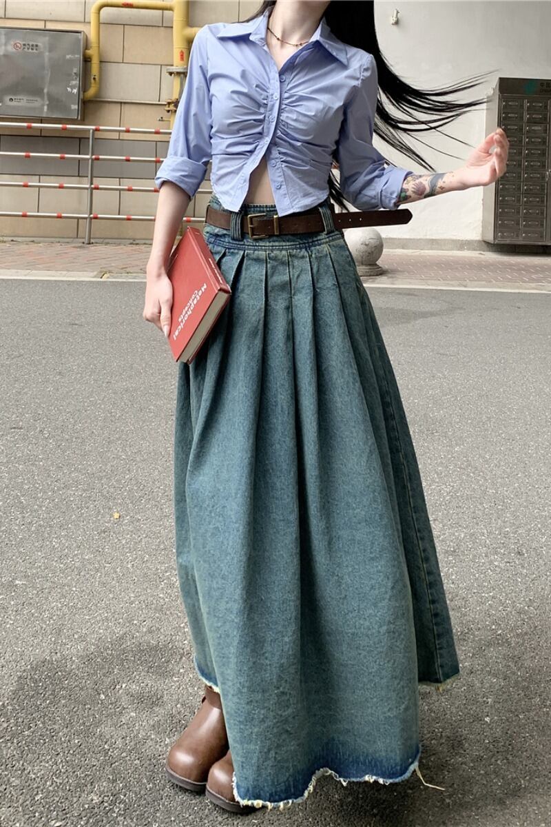 レトロウエストアンブレラスカートデニムスカートレディース夏プリーツ大振りスカートセンス小ミディアムスカート サマー 夏物 0921991002431569