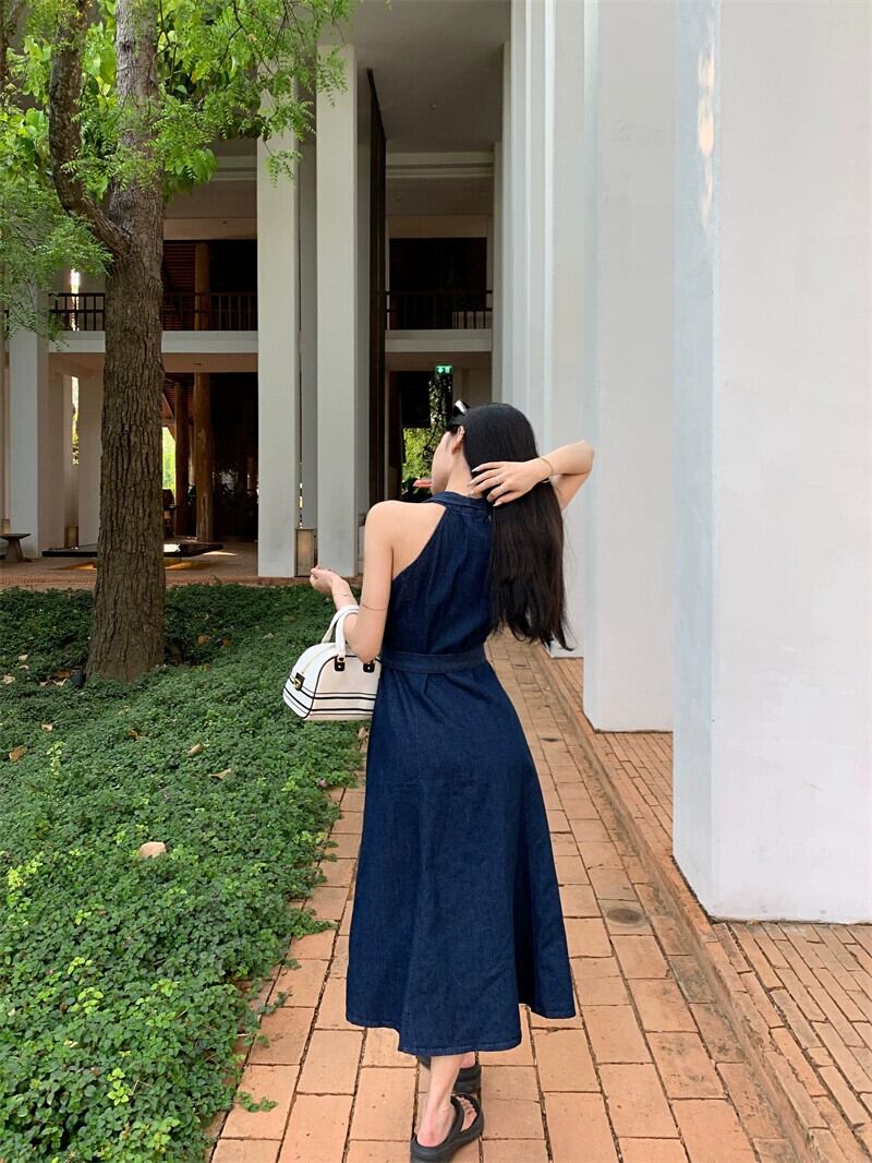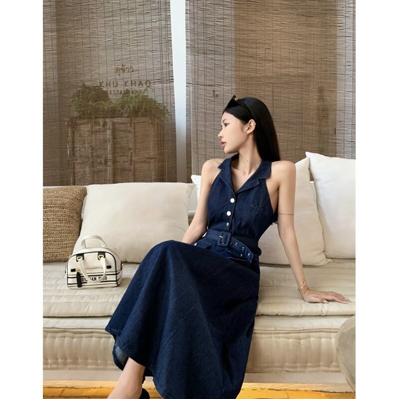 フレンチレトロデニムベストドレス女性の夏の2023新しい気質ウエスト痩身ミッドレングススカート潮 サマー 夏物 0921934676437714