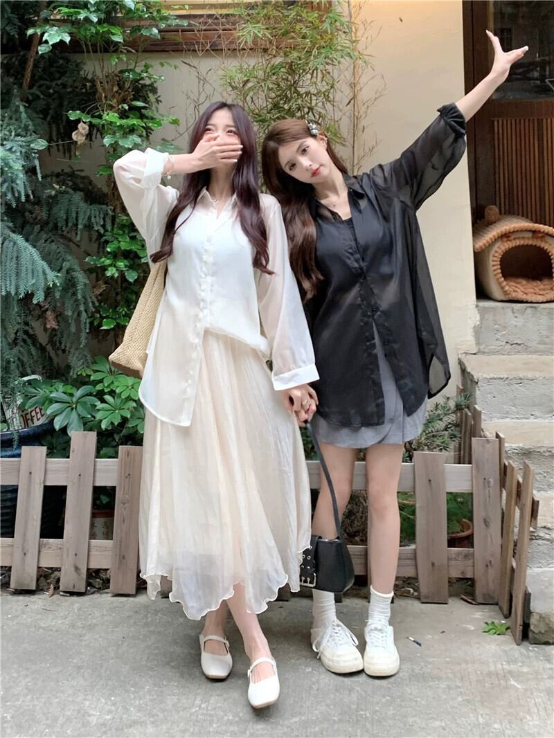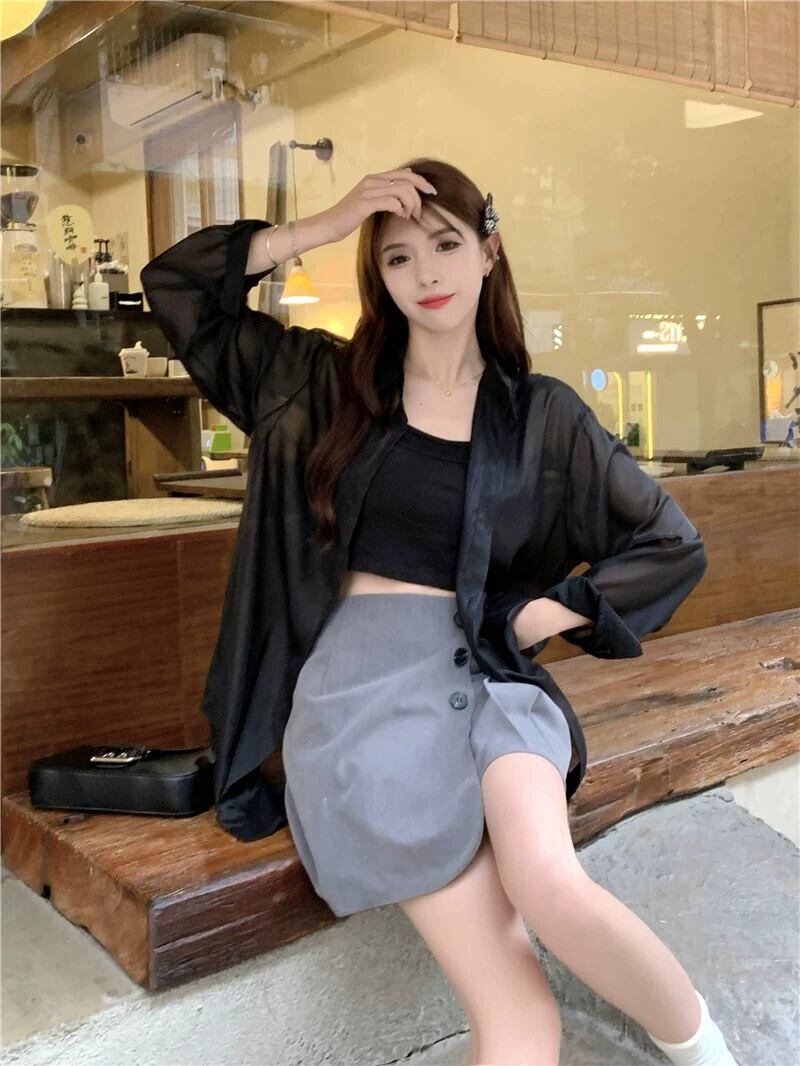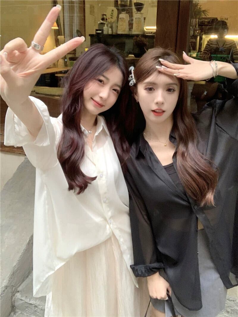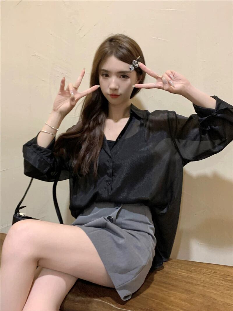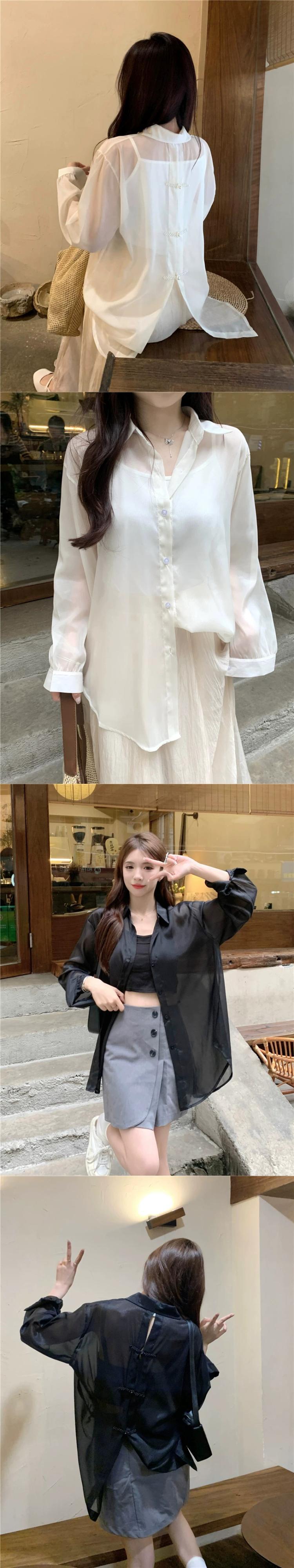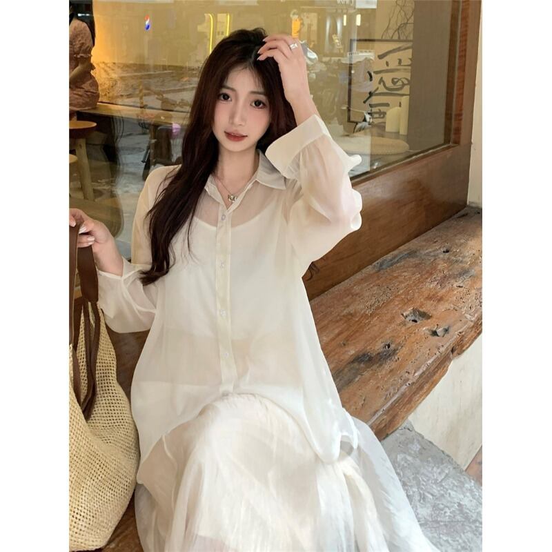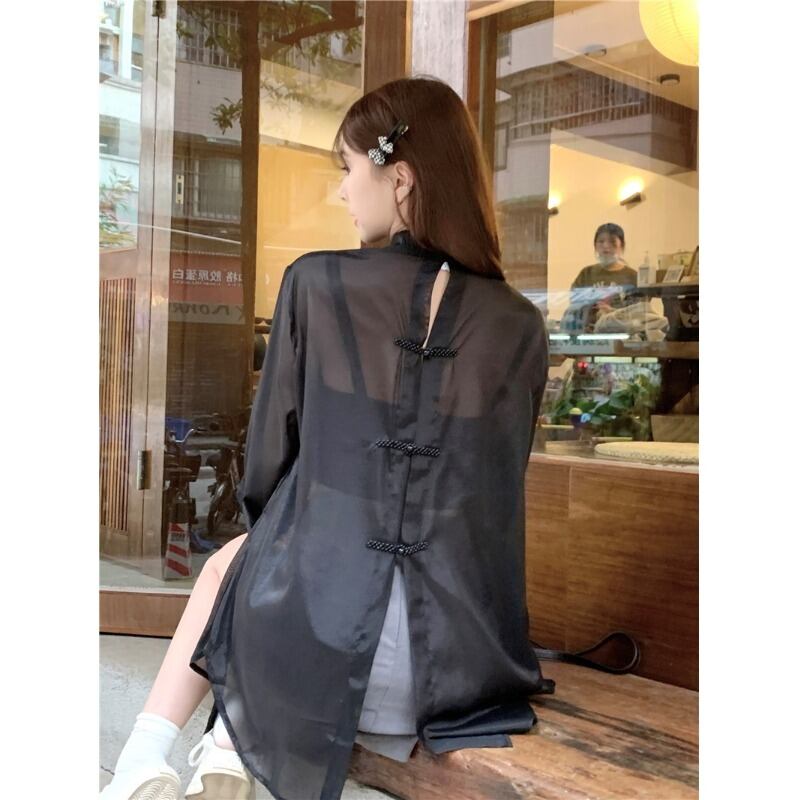 National ウィンドボタン長袖シャツ女性の 2023 夏の新しいルーズなデザイン感覚バックレススリット日焼け止めシャツトップ ロング サマー 夏物 0921911287647081