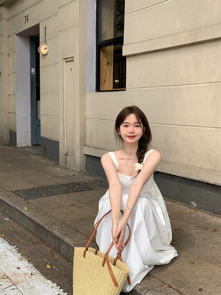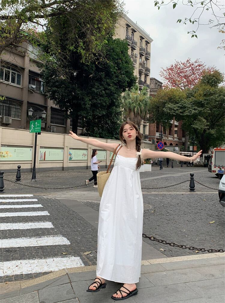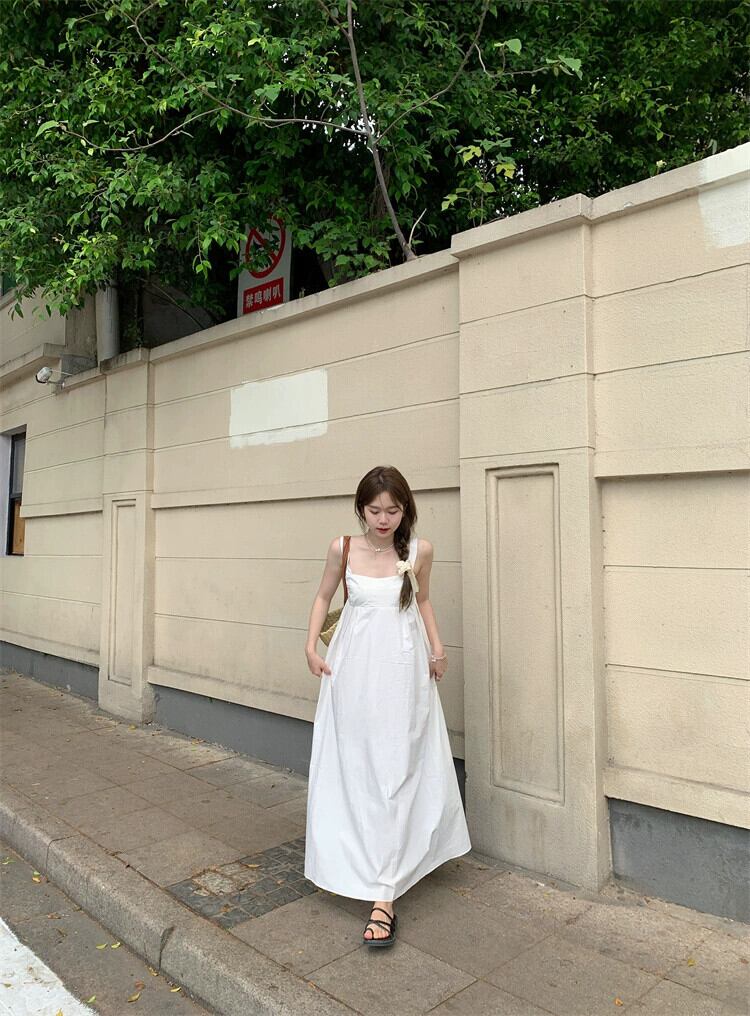 純粋な欲望っぽいスタイルの白いサスペンダードレスの女性の夏の 2023 新しい気質ルーズスリムボトムミッドレングススカート ホワイト サマー 夏物 0921990237598254