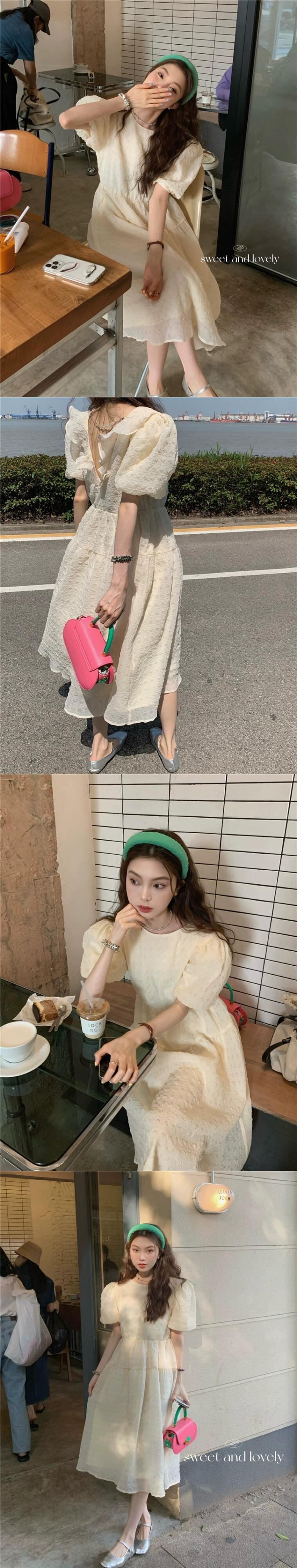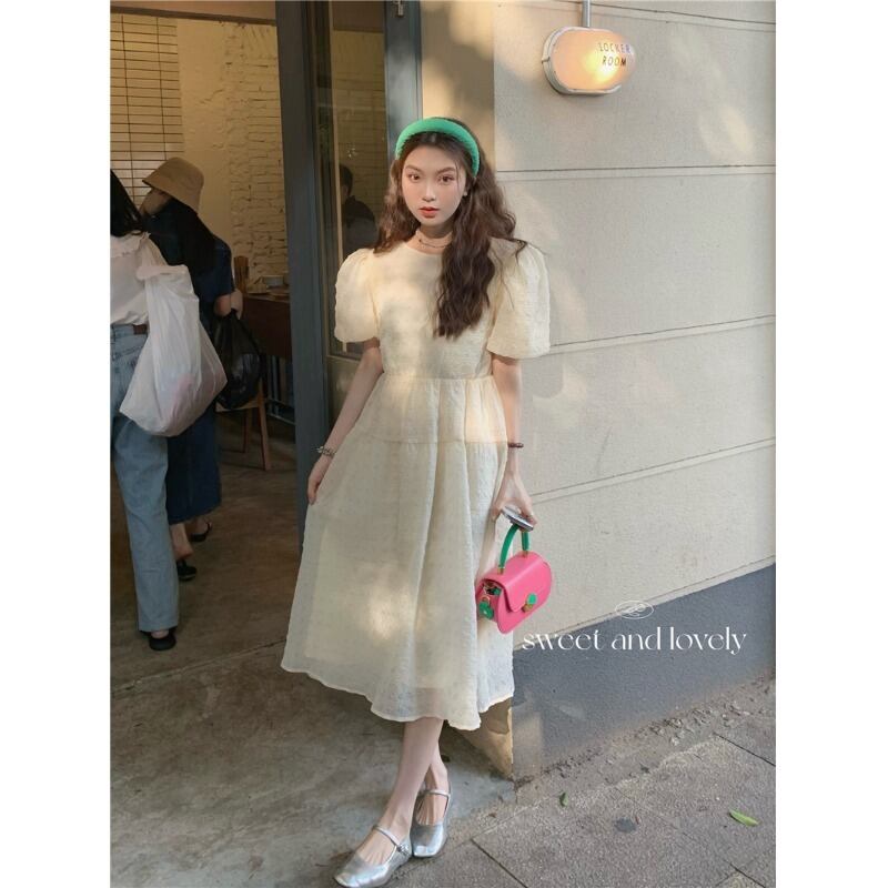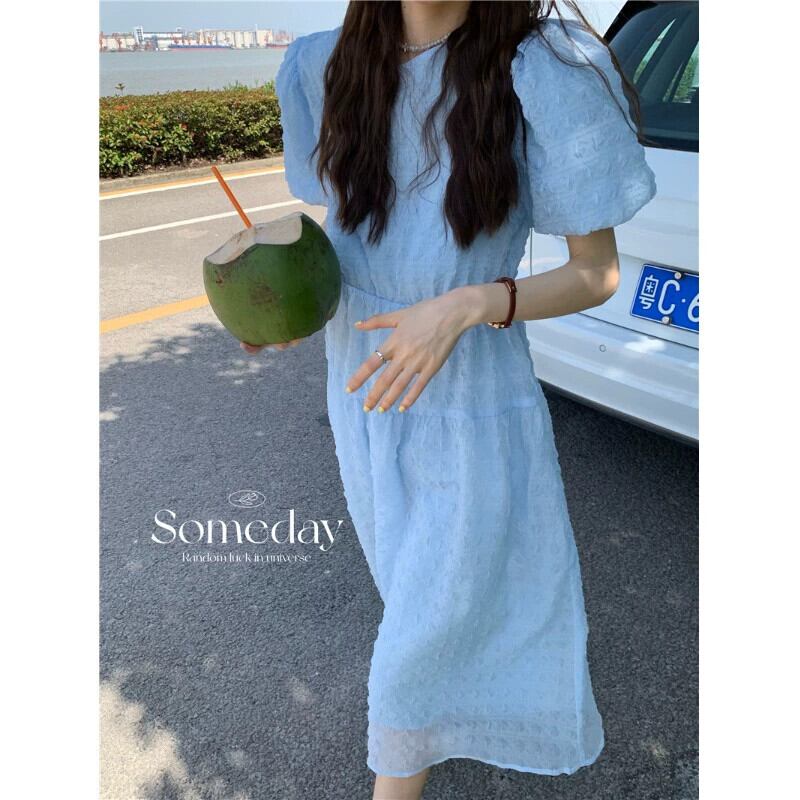 甘いパフスリーブドレス女性の夏の2023新しいブルーティーブレイクドレスウエストと気質aラインスカート 大人ガーリー スウィート キュート カジュアル サマー 夏物 0921962684082663