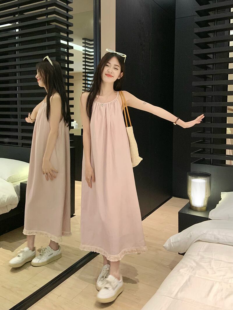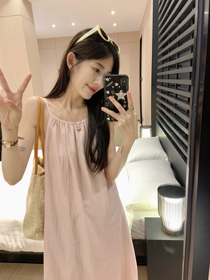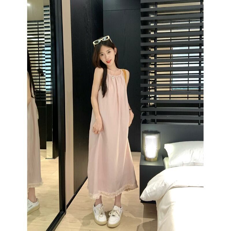 甘いピンクのホリデースタイルのサスペンダードレスの女性の夏の2023新しいミッドレングススリムでオールマッチ気質スカート 大人ガーリー スウィート キュート カジュアル サマー 夏物 0921982739099118