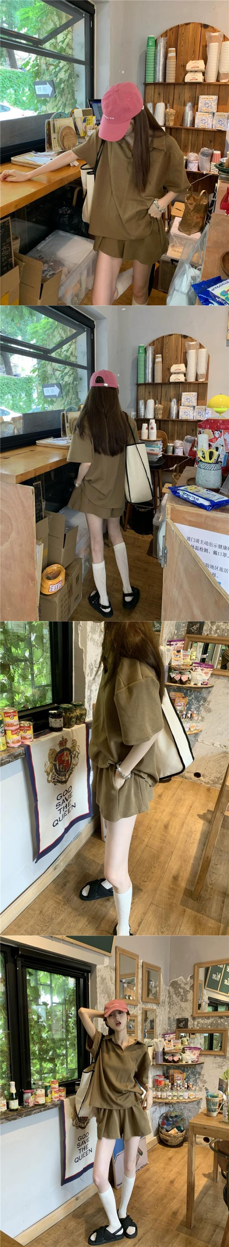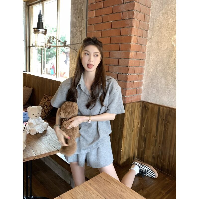 シンプルオールマッチスーツレディース2023夏新作ゆったり半袖トップスハイウエスト薄手ワイドレッグショーツ2点セット ハイウェスト サマー 夏物 ブルマー 0921940018288517