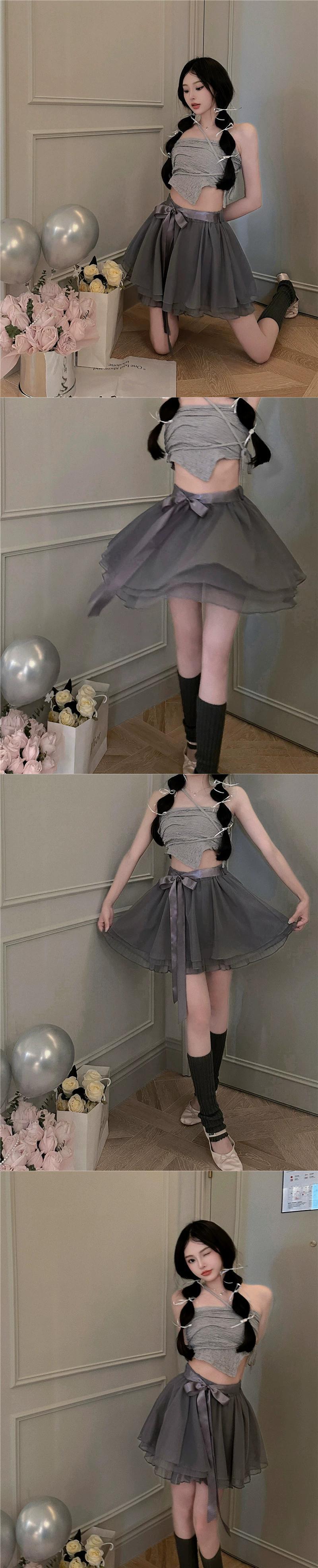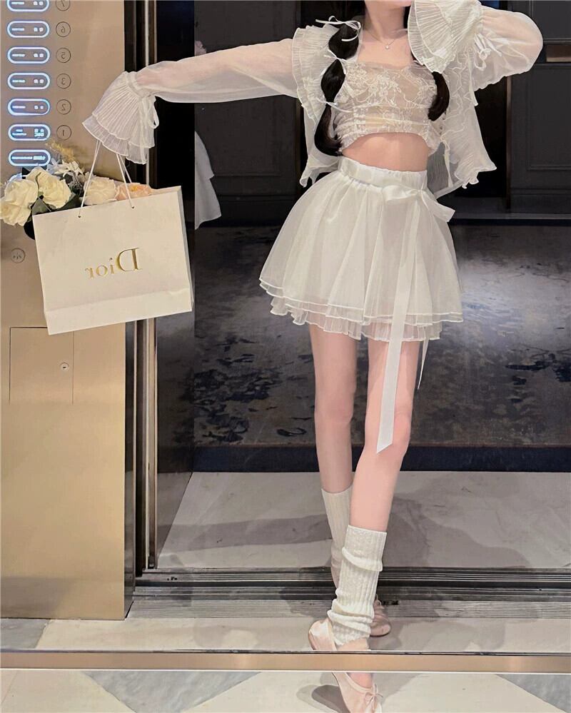 バレエメッシュリボンスカートレディース夏ハイウエストチュチュスカート気質ハイレベル妖精ショートスカート ハイウェスト サマー 夏物 パニエ ペチコート 0921918723234045