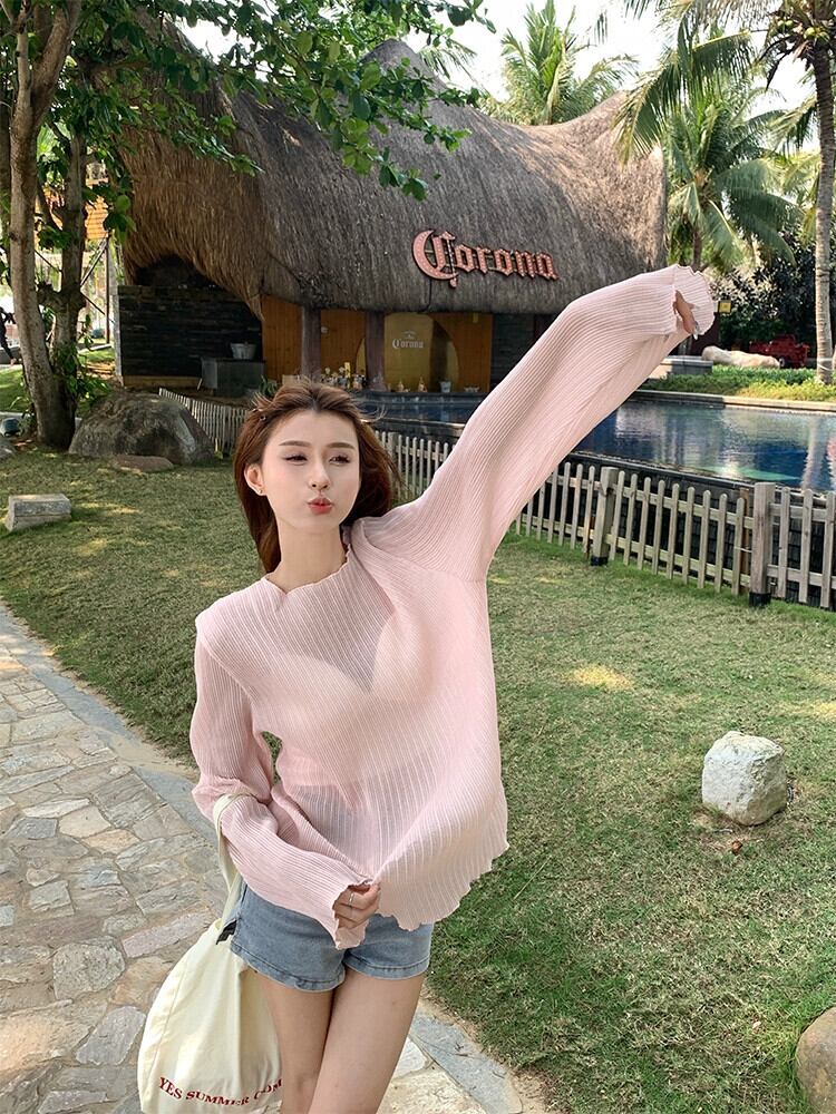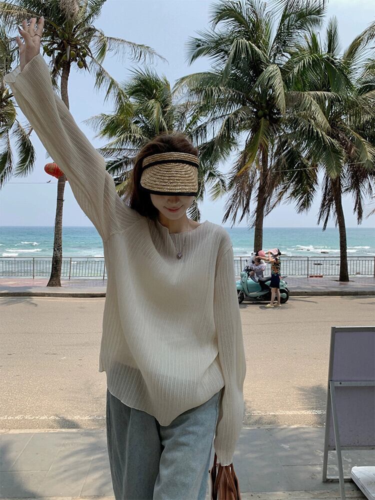 純粋な欲望のテクスチャーセンス長袖 Tシャツレディース夏薄手の日焼け止めシャツゆるいカジュアルデザインフェアリートップ ロング サマー 夏物 0921939142784524