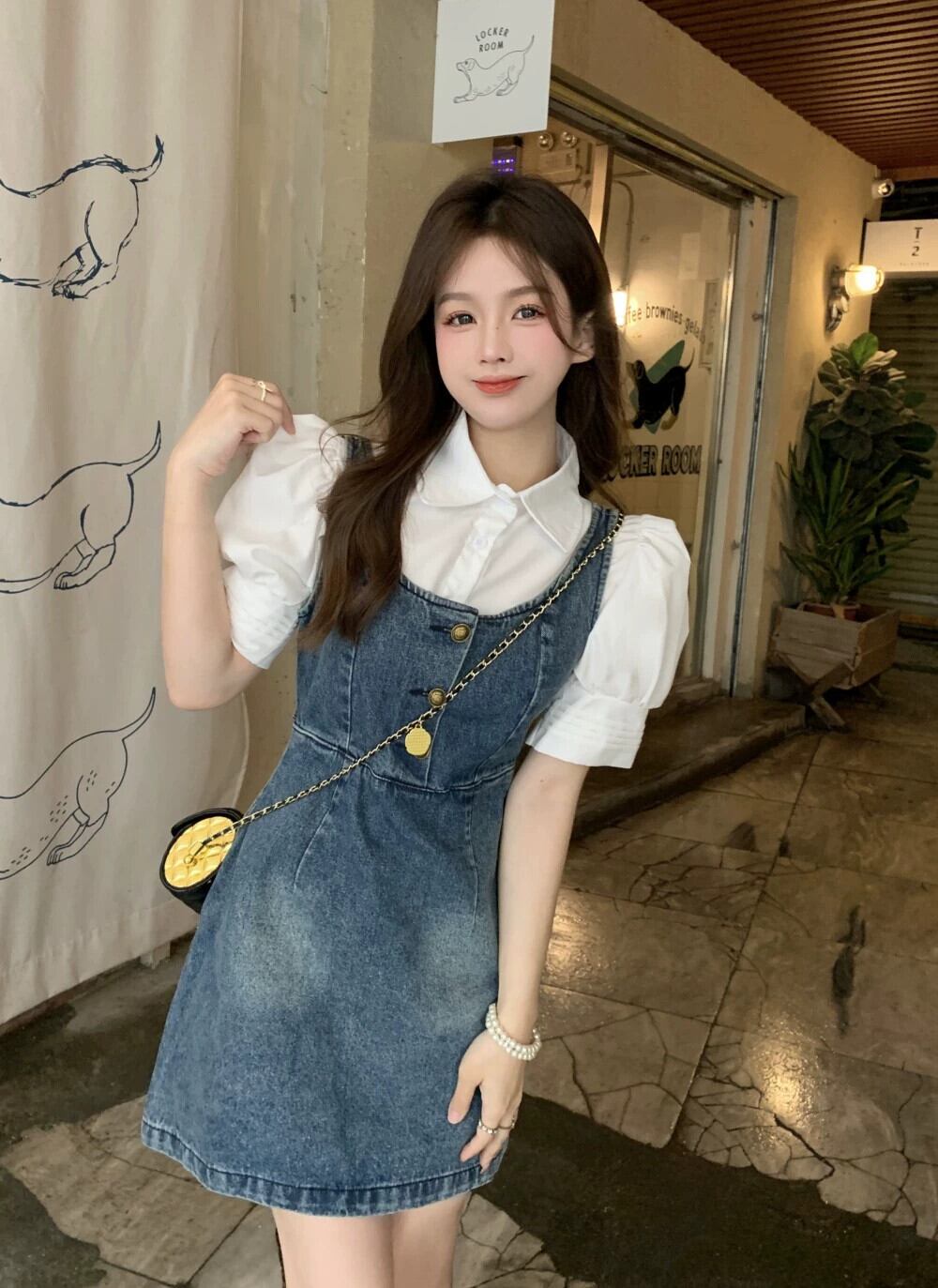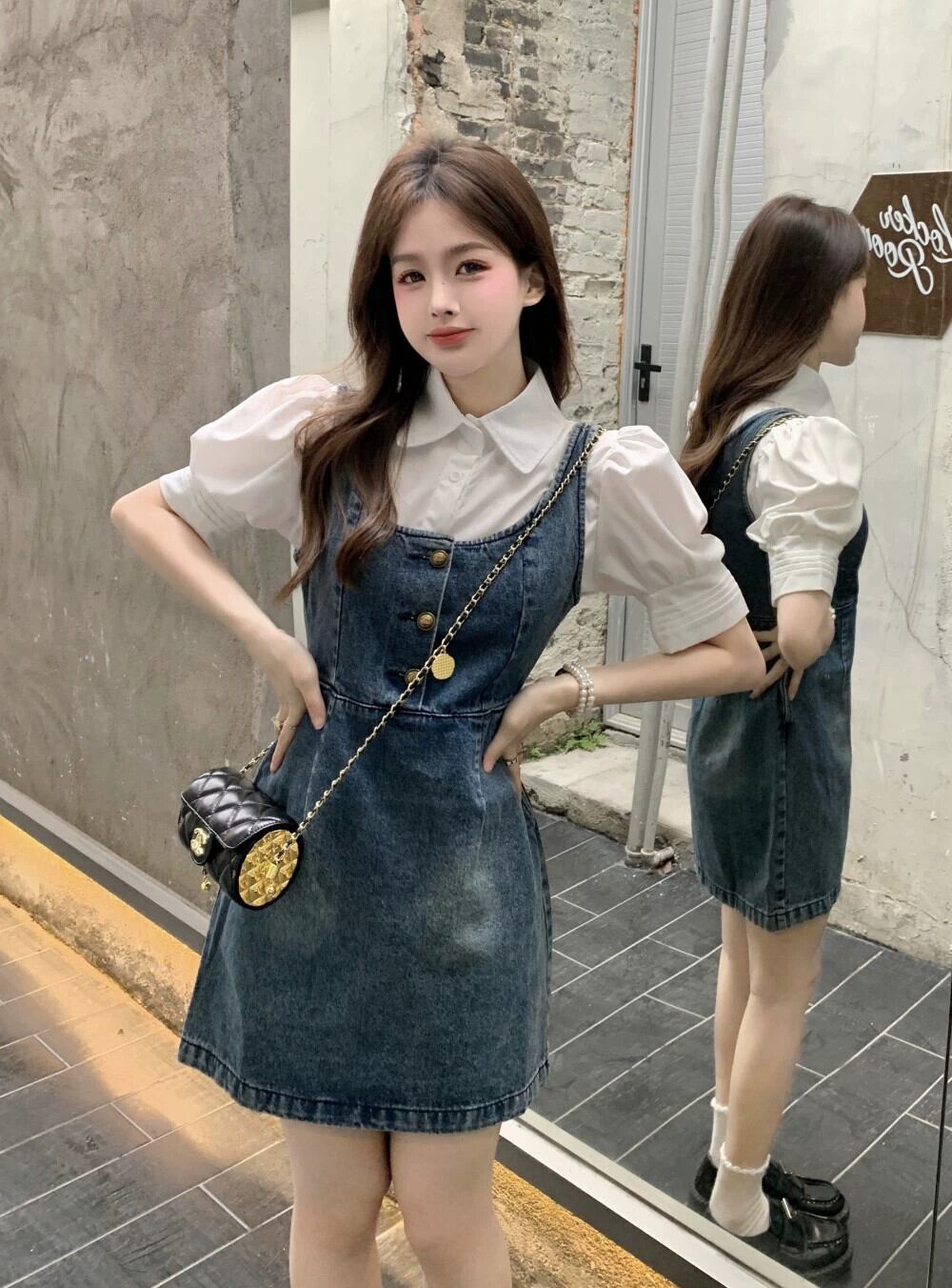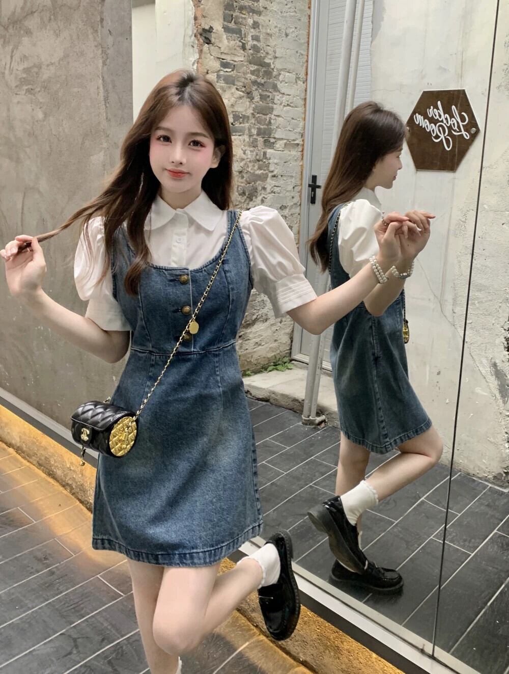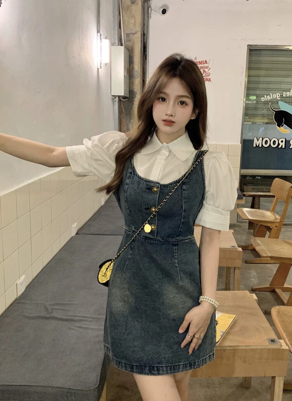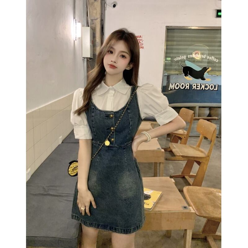 センスボタンサスペンダードレス女性の夏の2023新しい気質スリムウエストデニムスカート サマー 夏物 0921959296761384