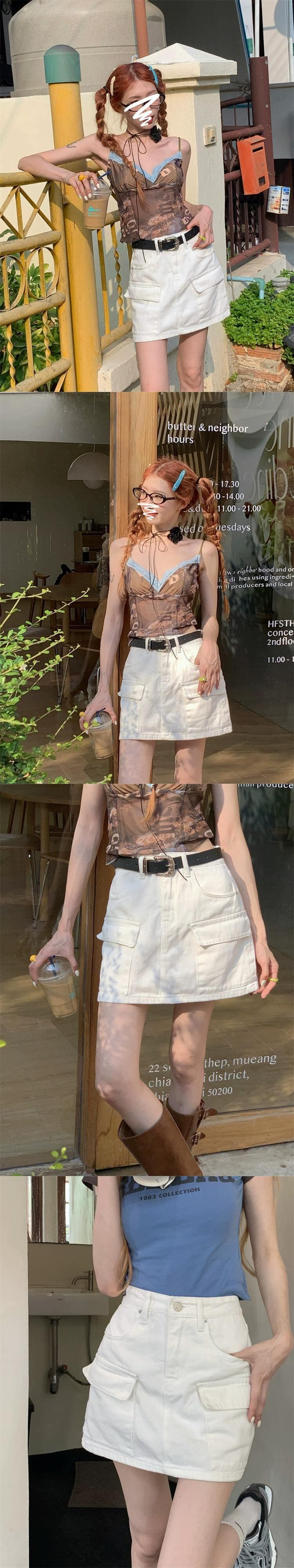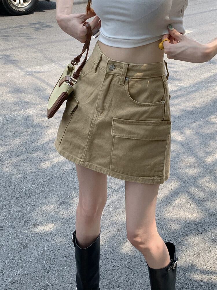 デザインセンスポケットツーリングスカート婦人服夏2023新しいオールマッチハイウエストスリムデニムスカート ハイウェスト サマー 夏物 0921950775494993