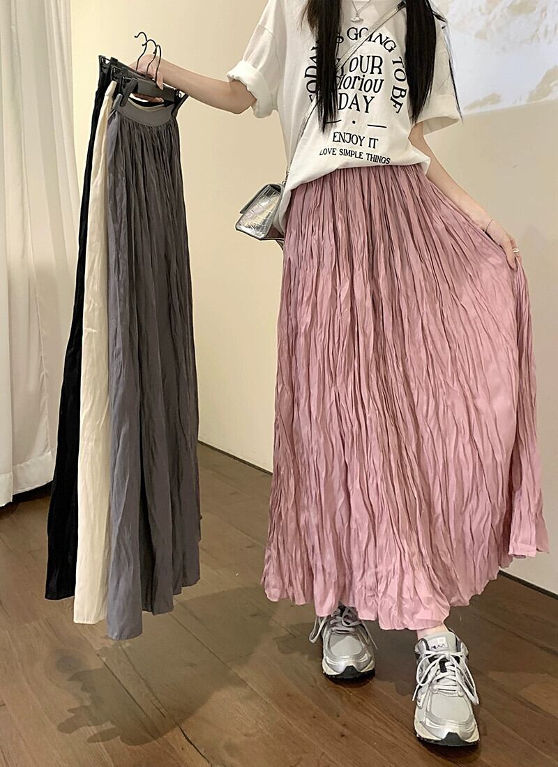 ピンクスカート レディース夏ミドル丈スカート ハイウエスト スリムデザイン 折り目感 ニッチ気質 Aラインスカート ハイウェスト サマー 夏物 0921965679407269