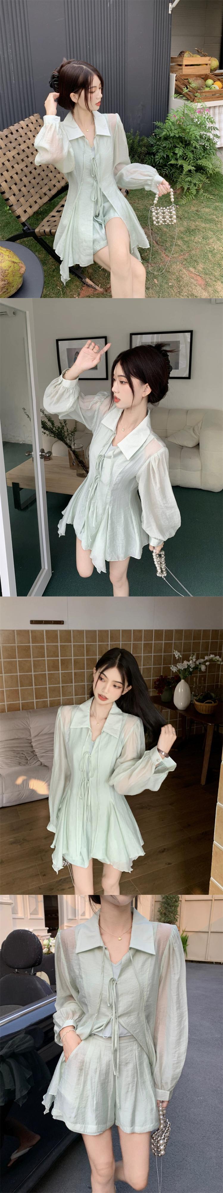 フレンチジェントルレース日焼け止めシャツアウタースーツ女性の夏のボトムサスペンダートップショーツスリーピーススーツ サマー 夏物 ブルマー 0921986695579835