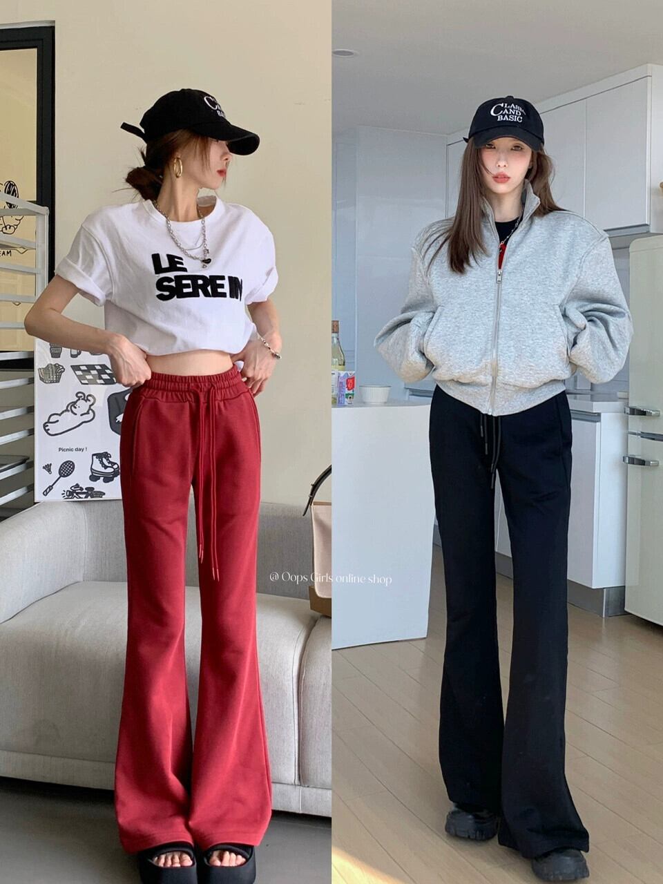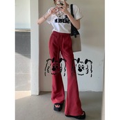 アメリカンレトロハイウエストドレープ薄手カジュアルパンツ女性の夏の2023新しいオールマッチ気質フレアスポーツパンツ ハイウェスト レッド サマー 夏物 0921967622426509